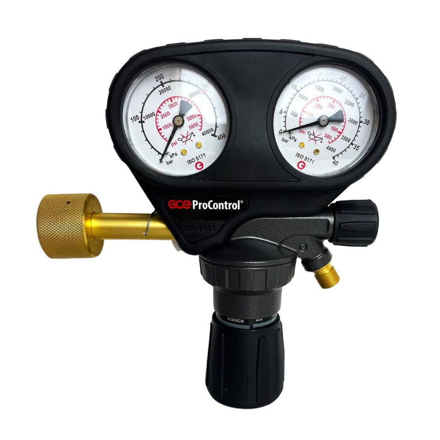Dieser professionelle GCE ProControl Druckminderer für Stickstoff ist ein echtes Arbeitstier! Mit einem Vordruck von 200 bar und regelbarem Hinterdruck von 0-10 bar erfüllt er alle Anforderungen nach DIN EN ISO 2503. Der robuste Manometerschutz bewahrt das Gerät vor Beschädigungen beim Transport und Flaschenwechsel. Durch die neueste Encapsulated-Technology regelt er präzise und stabil - genau das, was du für anspruchsvolle Arbeiten brauchst. Mit Flaschenanschluss W24,32x1/14″ und Ausgangsanschluss G1/4“ passt er zu den meisten Standard-Gasflaschen. Die Dreifachskalierung am Manometer ermöglicht einfaches Ablesen auch bei schlechtem Licht. Perfekt für Werkstätten, Labore und Industrie - zuverlässig, sicher und langlebig!