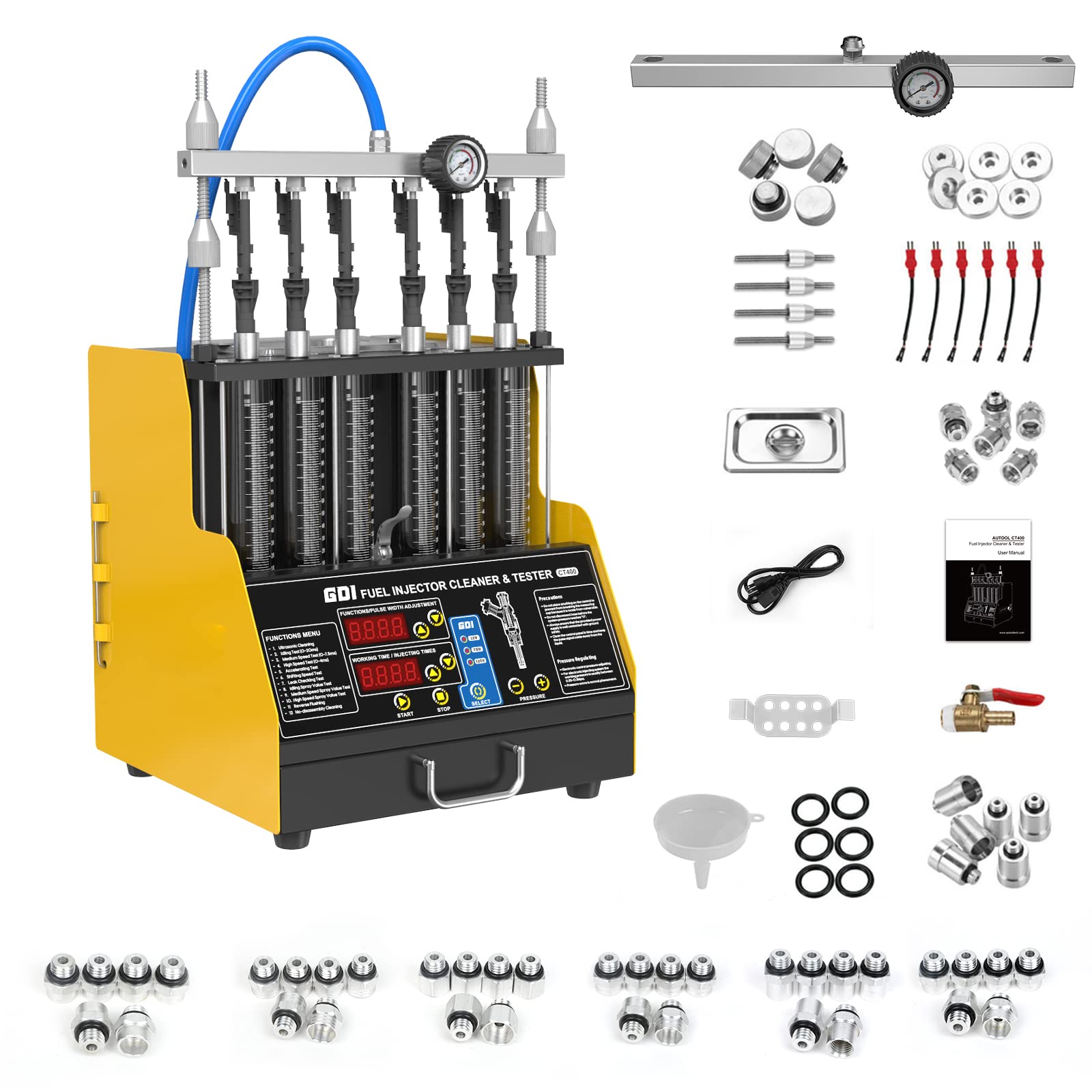 Profí-Reinigung für deine Einspritzdüsen! Das MOTOCOCHE Ultraschall-Reinigungsgerät bringt verstopfte Einspritzdüsen wieder auf Vordermann. Mit 10 Testmodien: Ultraschallreinigung, Leerlauf-Test, Beschleunigungstest, Dichtheitsprüfung und mehr. Die Ultraschalltechnologie löst selbst hartnäckige Ablagerungen in den Düsen. Für 4 Zylinder gleichzeitig - spart Zeit bei der Reparatur. Das LCD-Touchscreen Display zeigt alle Parameter an, Manometer und Glasrohre ermöglichen die Einstzeitüberwachung. Testet Gleichmäßigkeit, Einspritzmenge und Dichtheit der Düsen. Mit austauschbaren Anschlüssen für alle Fahrzeugtypen. Perfekt für Werkstätten, die Motorräder und Autos reparieren. Ein unverzichtbares Diagnosegerät, das die Lebensdauer deiner Einspritzdüsen verlängert und Kraftstoffverbrauch optimiert. Professionelle Ergebnisse für deine Werkstatt!