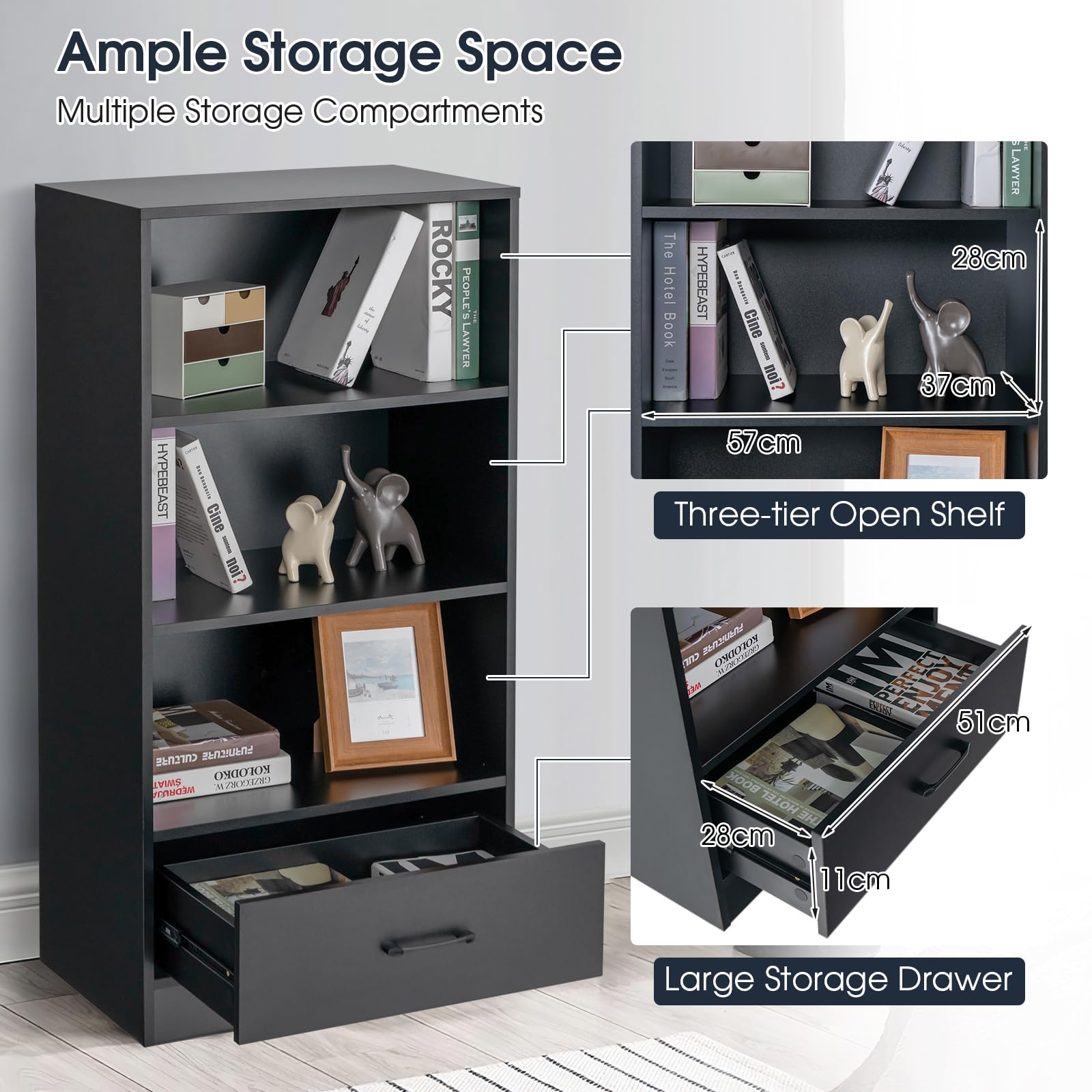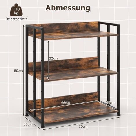 Hey! Dieses GIANTEX Bücherregal im Industrial-Look ist genau das, was dein Zuhause braucht. Mit seinen drei geräumigen Ebenen bietet es jede Menge Stauraum für Bücher, Deko, Pflanzen oder was auch immer du unterbringen möchtest. Das Coole: Die Einlegeböden sind höhenverstellbar - so passt du das Regal ganz individuell an deine Bedürfnisse an. Die praktischen Schutzklappen an den Seiten verhindern, dass etwas herunterfällt. Super praktisch! Das Regal ist aus robusten Materialien gefertigt: Der Rahmen aus pulverbeschichtetem Metall und die Böden aus stabilen Spanplatten halten richtig was aus. Das oberste Regal trägt bis zu 50 kg, die anderen jeweils 30 kg - da kannst du getrost auch schwere Sachen reinstellen. Die Kippsicherung sorgt dafür, dass alles sicher steht, und die rutschfesten Füße schützen deinen Boden vor Kratzern. Die natürliche Holzmaserung in rustikalem Braun passt super zu vielen Einrichtungsstilen - ob im Wohnzimmer, Arbeitszimmer oder sogar in der Küche. Der Aufbau ist mit der beiliegenden Anleitung echt einfach. Maße: 70 x 35 x 81 cm (L x B x H) - also kompakt genug für kleine Räume, aber geräumig genug für deine ganzen Sachen. Einfach perfekt für mehr Ordnung im Alltag!