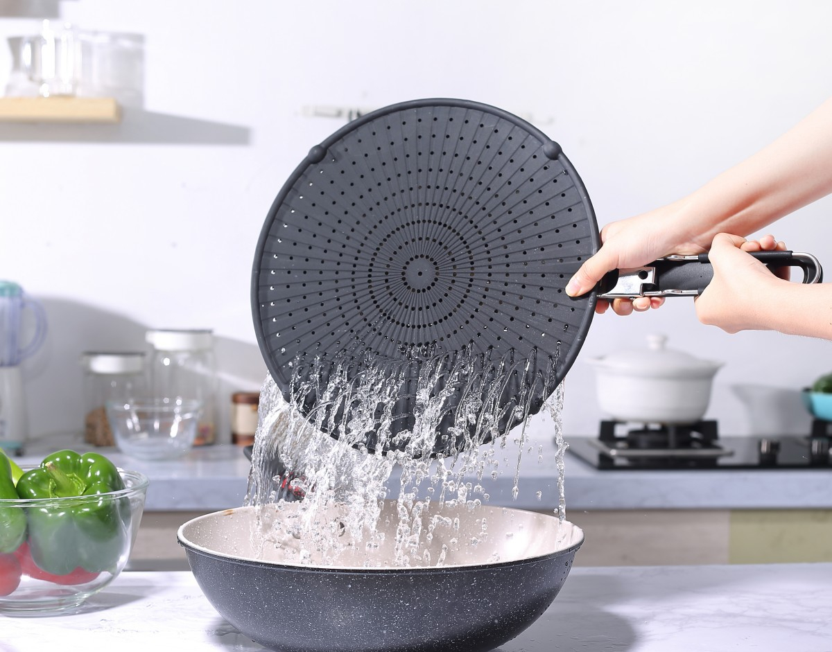 Schluss mit fettigen Spritzern in der ganzen Küche! Dieser praktische Spritzschutz aus Edelstahl hält das heiße Öl und Fett genau da, wo es hingehört - in der Pfanne. Das ultrafeine Netz fängt selbst die kleinsten Spritzer zuverlässig auf und schützt dich vor unangenehmen Verbrennungen. Einfach auf die Pfanne legen und schon kannst du entspannt braten, ohne dass die ganze Küche sauber gemacht werden muss. Die Reinigung ist super einfach - schnell abspülen, eventuell kurz einweichen und schon ist der Spritzschutz wieder blitzblank. Erhältlich in drei praktischen Größen (16cm, 18cm, 23cm), sodass für jede Pfanne der passende Schutz dabei ist. Aus robustem Edelstahl gefertigt, der lange hält. Endlich wieder sauber und stressfrei kochen!