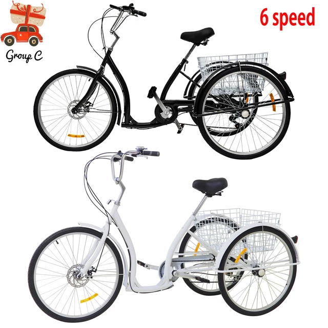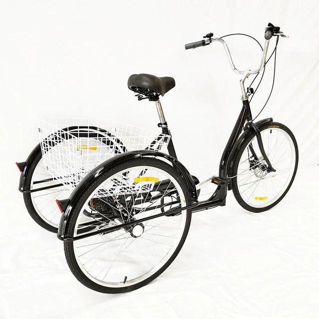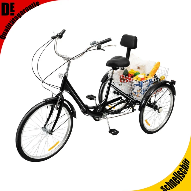 Perfekt für alle, die mehr Stabilität beim Radfahren suchen! Dieses 26-Zoll-Dreirad ist speziell für Erwachsene und Senioren entwickelt worden. Mit der 6-Gang-Schaltung meisterst du auch steilere Straßen problemlos - super praktisch für den Alltag!\\n\\nDer große Einkaufskorb vorne ist ein echter Game-Changer: Einkäufe, Handtasche oder sogar der kleine Hund finden hier Platz. Und das Beste? Du musst nicht mal absteigen, um etwas reinzulegen.\\n\\nTechnische Highlights:\\n• Rahmengröße: 198 cm\\n• Verstellbarer Sitz (100-110 cm) und Lenker\\n• Maximale Belastung: 120 kg\\n• Vordere Scheibenbremse + hintere Trommelbremse\\n• 26-Zoll-Reifen mit Anti-Rutsch-Profil\\n\\nOb für den Wochenmarkt, den Ausflug zum See oder einfach nur für eine gemütliche Runde durch die Nachbarschaft - dieses Dreirad macht einfach Laune! Und kein Stress mit Parkplatzsuche...\\n\\nExtra-Komfort: Der Sitz ist extra weich gepolstert und der Rücken wird optimal gestützt. So kommen auch Oma und Opa ohne Rückenschmerzen an! Ideal für Menschen zwischen 1,65 m und 2,25 m Körpergröße.