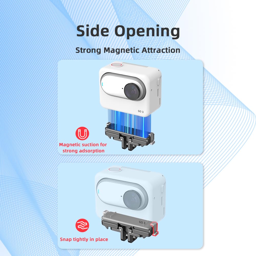 Du willst mit deiner Insta360 GO Ultra richtig coole Aufnahmen machen? Diese Magnet-Halterung ist dein neuer bester Freund! Mit drei super starken Magneten hält sie deine Kamera sicher auf jeder Metallfläche - ob am Fahrrad, Auto oder Kühlschrank. Das geniale Schnellgriff-System macht Anbringen und Abnehmen zum Kinderspiel. Und das Beste: Trotz Halterung bleiben alle Funktionen erhalten - Oberlicht, Kamerataste, Objektiv und Sensor sind frei zugänglich. Der 180°-Klappständer verwandelt sie im Handumdrehen in einen Desktop-Ständer für Selfies oder Video-Calls. Aus leichtem Kunststoff (nur 26g), aber mega stabil. Maße: 5,6x5,3x3 cm. Perfekt für Content Creator, die flexibel sein wollen!