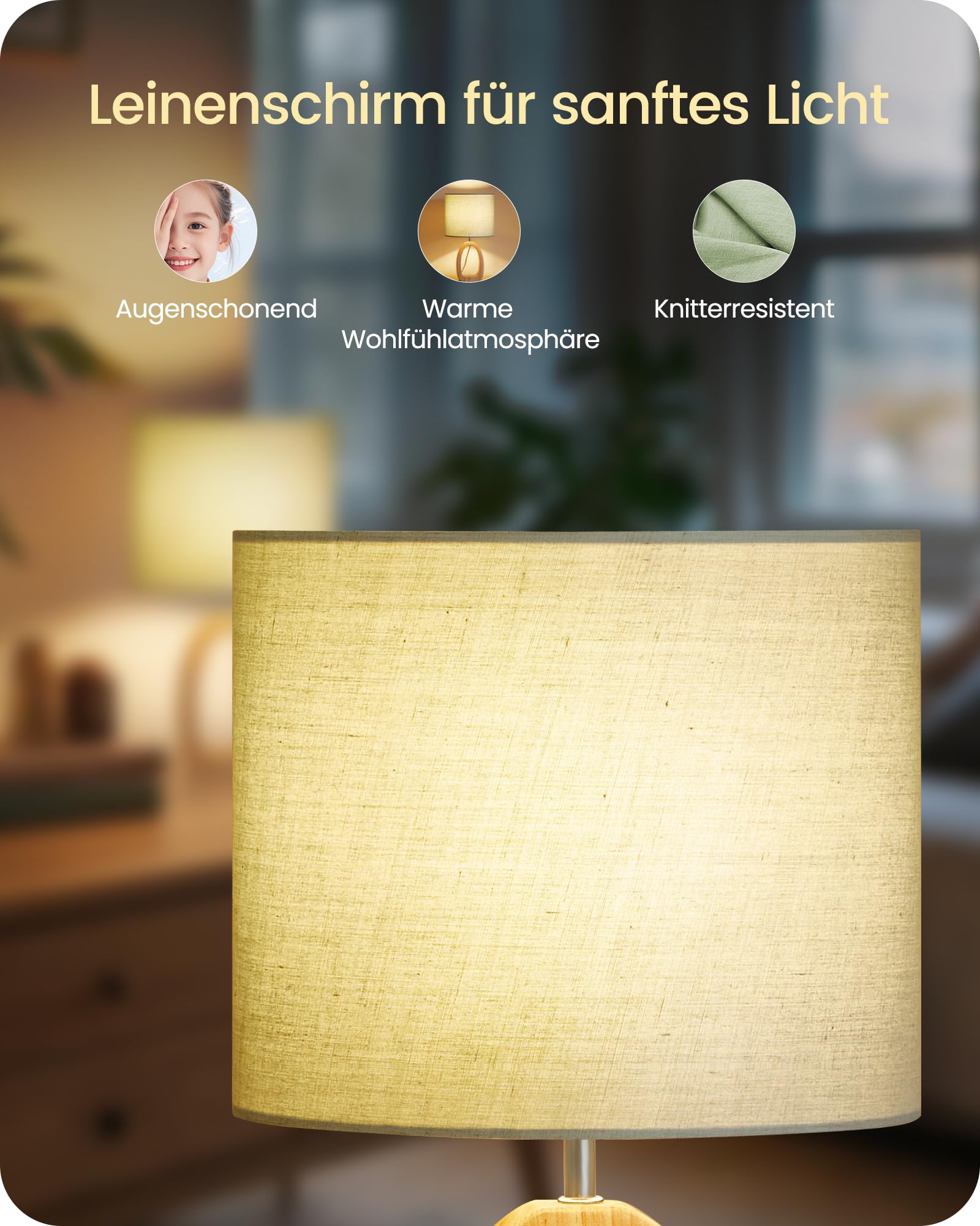 Suchst du eine gemütliche Beleuchtung für dein Zuhause? Diese GOEBLESON Nachttischlampe verbreitet mit ihrem hellgrünen Leinenschirm ein super angenehmes, augenschonendes Licht. Die Massivholzbasis mit ihrer natürlichen Maserung sieht nicht nur toll aus, sondern steht auch bombenfest. Mit dabei ist eine energiesparende 2700K LED-Birne in E27-Fassung - falls du mal was Anderes ausprobieren willst, passt aber auch jede andere Standard-Birne. Mit nur 36cm Höhe ist die Lampe super kompakt und passt perfekt auf Nachttisch, Schreibtisch oder Fensterbank. Das transparente Kabel und der praktische Schalter geben dem Ganzen noch diesen modernen Touch. Montieren? Kein Problem! In maximal zwei Minuten ist sie einsatzbereit - ganz ohne Werkzeugkasten. Perfekt fürs Wohnzimmer, Schlafzimmer oder Homeoffice. Übrigens: Die Lampe hat Energieeffizienzklasse F, aber wer will schon eine Nachttischlampe, die hell wie ein Stadion strahlt? Genau - lieber dieses gemütliche Licht für entspannte Abende!