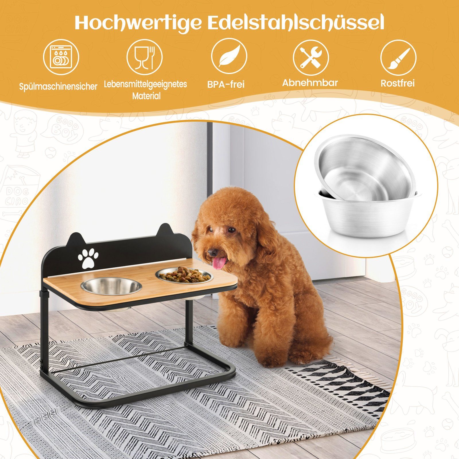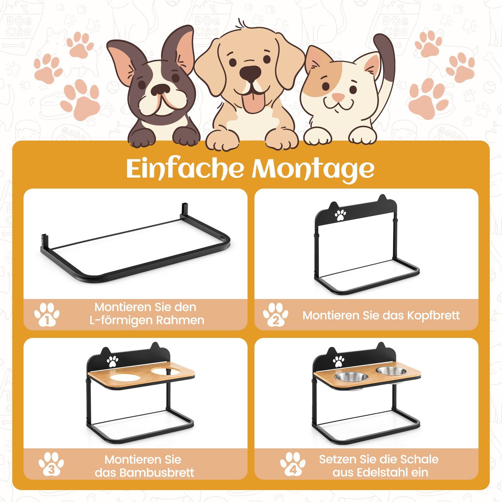 Wuff! Endlich Ordnung in der Futterecke! Diese GOEDCH Hundenäpfe in Wandmontage sind ein Game-Changer für jeden Haustierbesitzer. Aus lebensmittelechtem Edelstahl - robust, rostfrei und super leicht zu reinigen. Das 2er-Set bietet Platz für Futter und Wasser. Der Clou: Sie sind 90° klappbar! Bei Nichtgebrauch einfach an die Wand klappen - platzsparend und hygienisch. Die Höhe ist individuell einstellbar - perfekt für Hunde und Katzen jeder Größe. Einfache Montage an Wand, Holz oder Schrank - alle Schrauben inklusive. Die abnehmbaren Näpfe gehen fix in die Spülmaschine. Kein lästiges Bücken mehr - und dein Vierbeiner frisst in ergonomischer Haltung. Sag goodbye zu umgekippten Näpfen und Futterkrümeln auf dem Boden! Mach deine Küche oder den Flur zur stylischen Futterstation. Dein Haustier wird's lieben - und du auch!