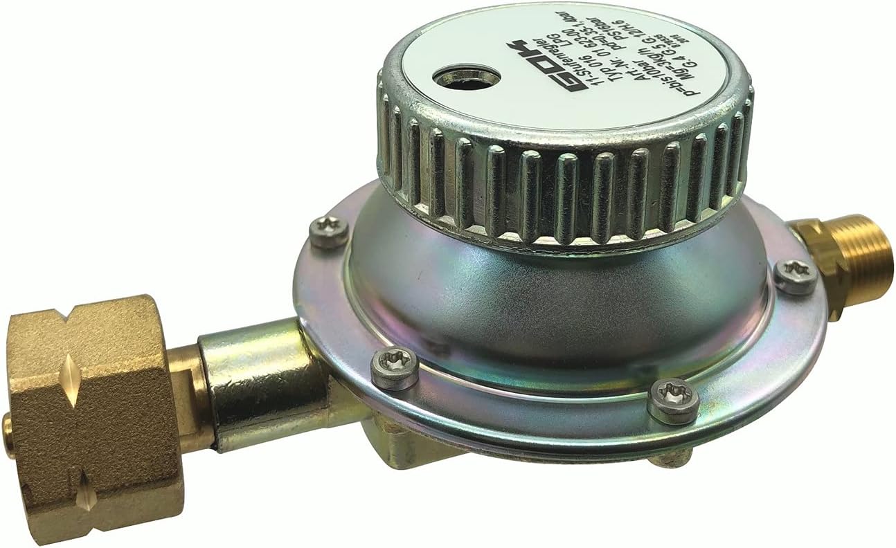 Pass auf deine Gasanlage auf! Dieser GOK Gasregler mit Kombianschluß ist super praktisch - du kannst ihn wahlweise an 5kg, 11kg oder 33kg Gasflaschen anschließen. Einstellbar zwischen 0,35 und 1,4 bar und mit 10 kg/h Durchfluss perfekt für den mobilen Einsatz. Das 3/8 LH-KN Gewinde passt standardmäßig und der nach unten gerichtete Schlauchanschluss verhindert Beschädigungen. Wichtig: Die Mutter nur mit nem Maulschlüssel festziehen, keine Rohrzange verwenden! EG-geprüft und sicher. Such dir einfach die passende Variante aus - hier die 10 kg/h Version. So machst du deine Gasversorgung sicher und zuverlässig. Immer schön die Teflondichtungen checken!