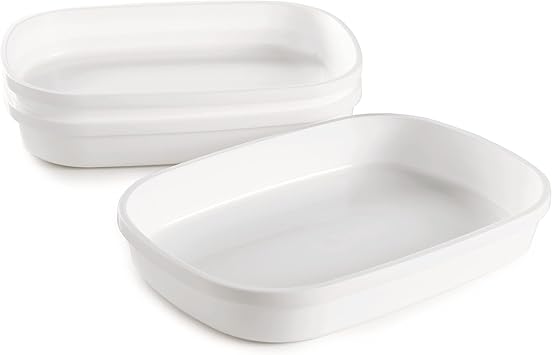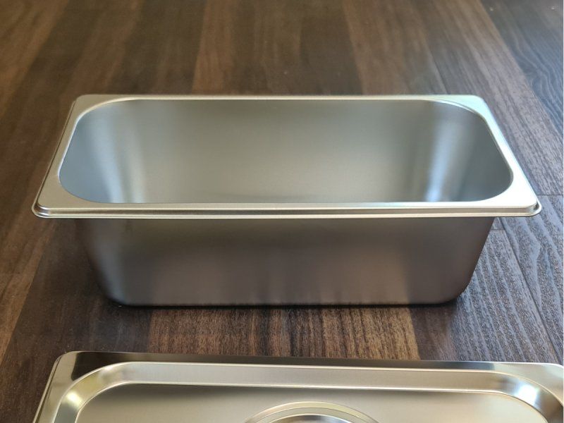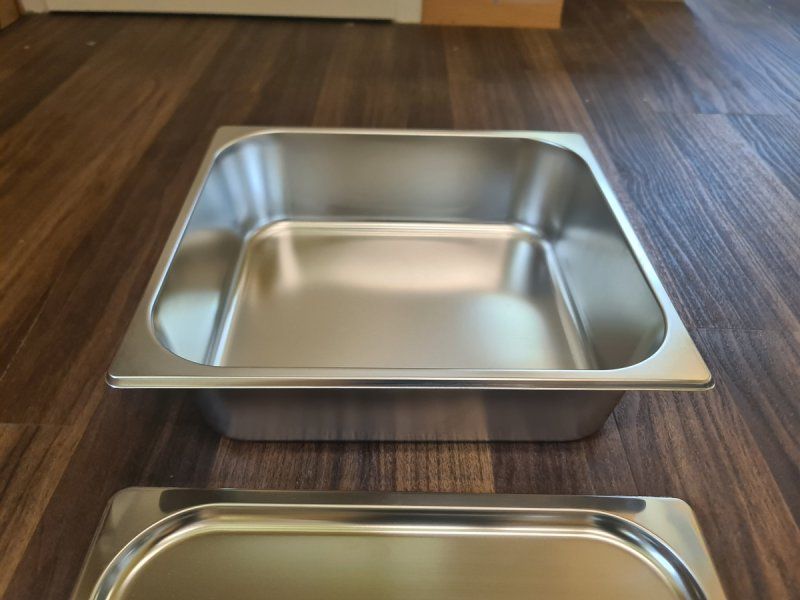 Perfekt organisiertes Panieren! Dieses 3-teilige Set aus Edelstahl macht das Panieren zum Kinderspiel. Drei Schalen (32,5x17,6x6,5 cm) mit passenden Deckeln - eine für Mehl, eine für Ei, eine für Semmelbrösel. Aus 0,65mm dickem Edelstahl, spülmaschinenfest und hygienisch. Keine Gerüche, leicht zu reinigen. Können platzsparend gestapelt werden. Ideal für Zuhause, aber auch professionell für Buffets, Hotels und Catering. Elektrolyse-Poliert, mit verdicktem Rand und Schnittschutz. Macht deine Küche ordentlicher und das Kochen hygienischer. Einfach praktisch!