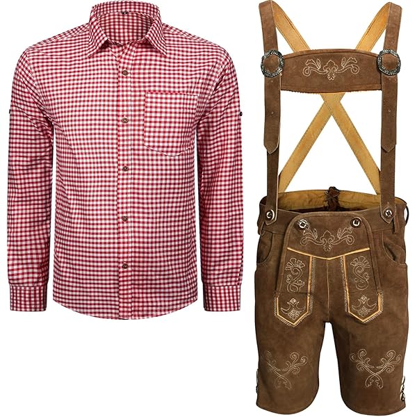 Servus! Dieses Trachten-Set macht dich zur echten Oktoberfest-Legende! Komplett-Set inklusive Lederhose aus 100% Veloursleder, passendem Gürtel UND Trachtenhemd. Die Lederhose hat alles was eine gute Trachtenhose braucht: 2 Seitentaschen, 1 Gesäßtasche und sogar eine Messertasche rechts. Der Bund und die Beinweite sind per Lederschnürung verstellbar - sitzt also wie angegossen! Innen ist der Bund mit weichem Kunstleder gefüttert, super bequem. Dazu gibt's ein Trachtenhemd aus 65% Baumwolle und 35% Polyester - in blau-weiß kariert oder rot-weiß kariert wählbar. Die Hösengrößen gehen von 46 bis 60, die Hemden von S bis 3XL - für jede Statur was dabei. Perfekt nicht nur fürs Oktoberfest, sondern auch für andere Feste oder Trachtenhochzeiten. Material Hose: 100% Veloursleder, Innenfutter: 100% Polyester. Einfach anziehen und strahlen wie ein echter Bayer!