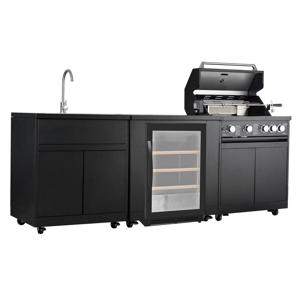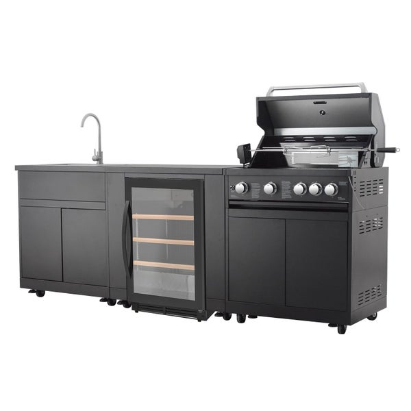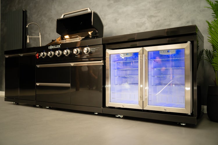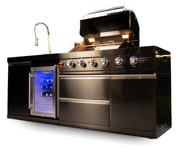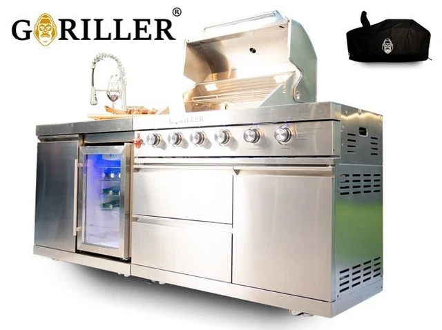 Die komplette Outdoor-Küche für echte Grill-Profis! Die GORILLER BLACKBACK M8 vereint Gasgrill, Kühlschrank, Edelstahl-Waschbecken und jede Menge Stauraum in einem System. Mit 300cm Breite und 90cm Arbeitshöhe hast du alles im Griff. Der Grill bietet 22,8kW Leistung, eine Sizzle-Zone und Backburner für perfekte Steaks. Das 8mm-Edelstahlrost ist absolut langlebig. Besonders praktisch: Der integrierte Kühlschrank hält Getränke und Zutaten frisch, während das Spülbecken für schnelle Reinigung sorgt. Eingebaute Beleuchtung ermöglicht Grillen bis in die Abendstunden. Wetterfester Edelstahl - für viele Jahre Grillvergnügen! Vormontiert für einfachen Aufbau. Der Traum jedes Grill-Liebhabers!