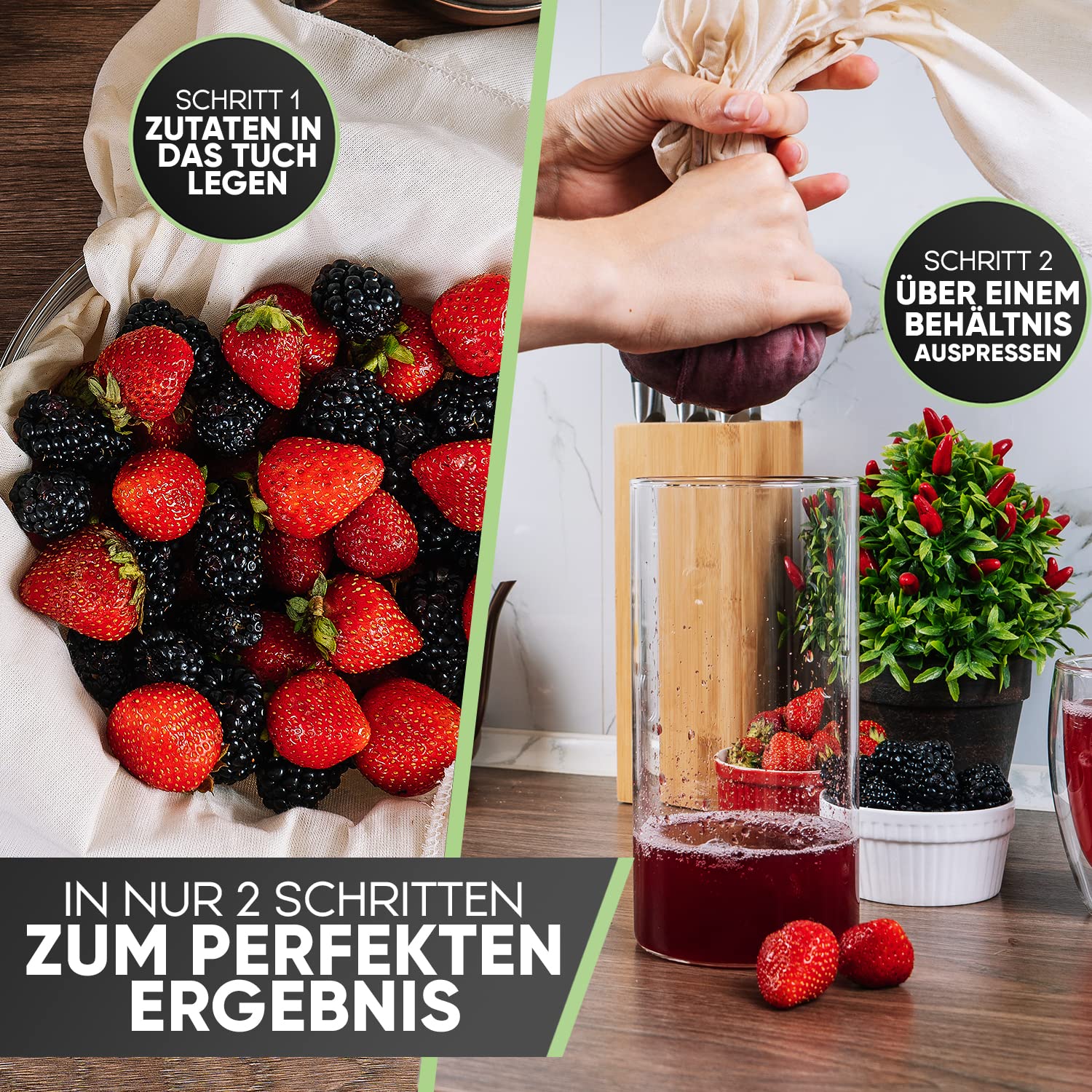 Für alle, die gerne kochen und backen! Diese Bio-Passiertücher sind einfach genial. Aus 100% GOTS-zertifizierter Bio-Baumwolle - also ohne Chemie und fair produziert. Jedes Tuch ist 50x50cm groß und schon fertig zugeschnitten, mit sauberen Säumen dass keine Fäden ins Essen fallen. Super zum Abseihen von Brühe, für Marmelade, Pudding oder selbstgemachte Sojamilch. Auch für Cold Brew Coffee perfekt! Und das beste: Du kannst sie immer wieder verwenden - einfach auswaschen und trocknen lassen. Sind richtig reißfest und gehen nicht kaputt. Komplett plastikfrei und in kompostierbarer Verpackung - gut für dich und die Umwelt. Mit diesen Tüchern machst du garantiert nichts falsch in der Küche!
