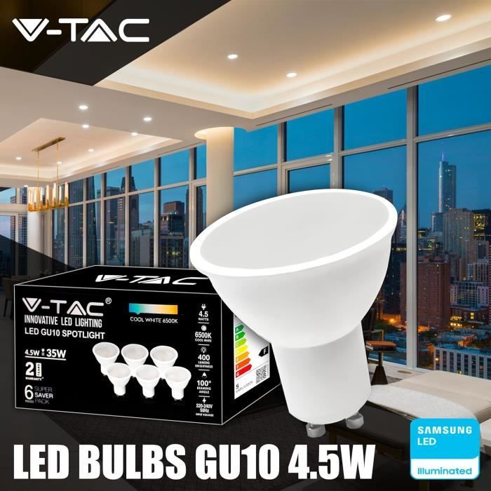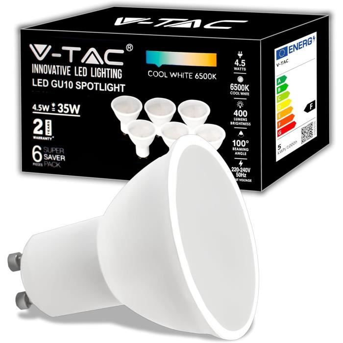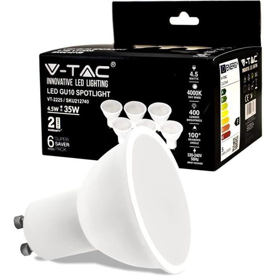Moderne Beleuchtung die spart! Diese 10 GU10 LED Spots verbrauchen nur 4,5W, sind aber so hell wie 35W Halogen. Mit 400 Lumen und neutralweißem Licht (4000K) - nicht zu gelb, nicht zu kühl. Perfekt für Deckenstrahler im Wohnzimmer, Flur oder Küche. Einfach die alten Birnen rausdrehen und diese rein - sofort volle Helligkeit! Lebensdauer: 20.000 Stunden, also Jahre ohne Wechsel. Spart richtig Strom und Geld. Nicht dimmbar, aber für die meisten Bereiche ideal. Machen Farben natürlich und lebendig. Super für alle, die auf Energieeffizienz achten wollen, ohne auf gutes Licht zu verzichten. Einfach mal ausprobieren - deine Stromrechnung wird's dir danken!
