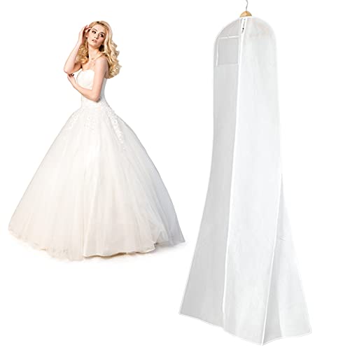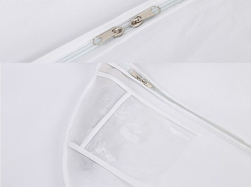 Dein schickes Kleid verdient den besten Schutz! Dieser Kleidersack bewahrt dein Hochzeitskleid, Abendkleid oder Anzug sicher vor Staub, Feuchtigkeit und Licht. Die glockenförmige Seitennähte geben genug Platz für voluminöse Kleider ohne dass sie gequetscht werden.\n\nDas transparente Sichtfenster lässt dich sofort erkennen was drin ist - kein langes Suchen mehr! Die klare Dokumententasche ist perfekt für ein Etikett damit du auch nach Jahren noch weißt welches Kleidungsstück sich darin verbirgt.\n\n• Maße: Ca. 183 cm lang, 79 cm breit\n• Material: Atmungsaktiv & säurefrei\n• Besonderheit: Glockenförmig für volle Kleider\n• Extras: Obere Schlaufe, untere Öse\n\nEgal ob für die Langzeitlagerung im Schrank oder für den Transport - deine teuren Kleidungsstücke bleiben in Top-Zustand. Die robuste Reißverschluss schließt sicher und die atmungsaktive Membrane verhindert Geruchsbildung. Deine Kleidung sagt Danke!