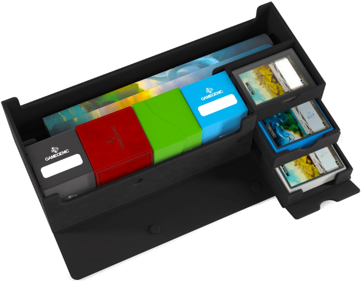Du sammelst Kartenspiele wie Magic, Pokémon oder Yu-Gi-Oh? Dann kennst du das Problem mit der Aufbewahrung! Der Collectors' Lair 2000+ ist die ultimative Lösung für deine wertvollen Karten. Platz für über 2000 Karten in Doppelsleeves oder sogar 4000+ ohne Sleeves - das ist richtig viel Stauraum! Die verschiebbare Acryl-Trennwand lässt sich individuell anpassen. Ob Toploading Cases, Magnetboxen oder Spielmatten - hier findet alles Platz. Passt perfekt in die beliebten schwedischen Regale. Die hochwertige Nexofyber-Oberfläche und die Mikrofaser-Innenverkleidung schützen deine Karten optimal. Schwarz und stylisch sieht die Box zudem noch super aus. Endlich Ordnung in deiner Sammlung! Kein Suchen mehr, keine verknickten Karten. Für ernsthafte Sammler und Spieler, die ihre Karten in Bestform halten wollen. Investiere in den Lair und deine Sammlung ist bestens geschützt!