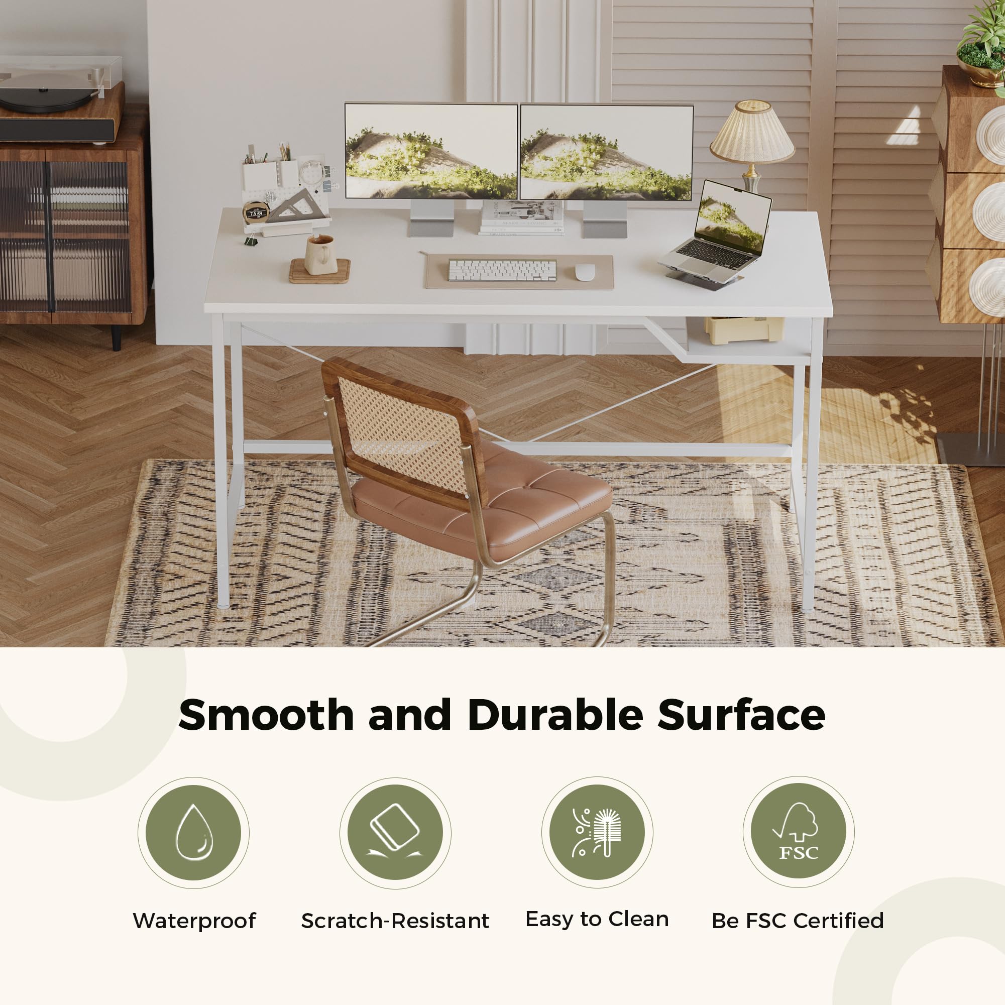 Platzprobleme? Dieser Mericonia Computertisch ist die Lösung! Mit nur 80x40cm passt er in jede noch so kleine Ecke. Super praktisch: Er hat Rollen! Du kannst ihn einfach dorthin schieben, wo du gerade arbeiten willst - ob zum Fenster für mehr Licht oder in die Ecke für mehr Ruhe. Der V-förmige Stahlrahmen macht ihn mega stabil, auch wenn mal was schwereres draufsteht. Die Platte ist aus FSC-zertifiziertem Holz - gut für die Umwelt und deine Gesundheit! Perfekt für Homeoffice, Gaming oder Studium. Unter dem Tisch ist genug Platz um die Beine auszustrecken oder Sachen zu lagern. Die Montage ist total einfach - mit klarer Anleitung und nummerierten Teilen. Sieht schick aus in Braun und passt zu fast jedem Einrichtungsstil. Wenn mal was nicht stimmt, gibt's guten Kundenservice! Einfach der perfekte Tisch für alle, die flexibel bleiben wollen! Ob im Wohnzimmer, Schlafzimmer oder Büro - dieser Tisch macht einfach alles mit!