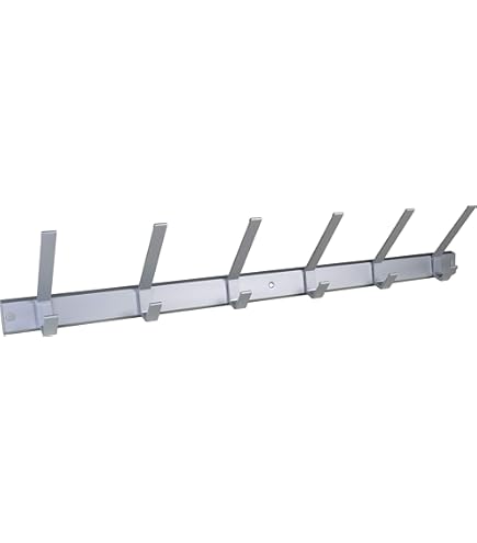 Ordnung im Flur! Diese praktische Garderobenleiste aus eloxiertem Aluminium bringt System in deine Aufbewahrung. Mit 4 stabilen Haken und komplettem Befestigungsmaterial.