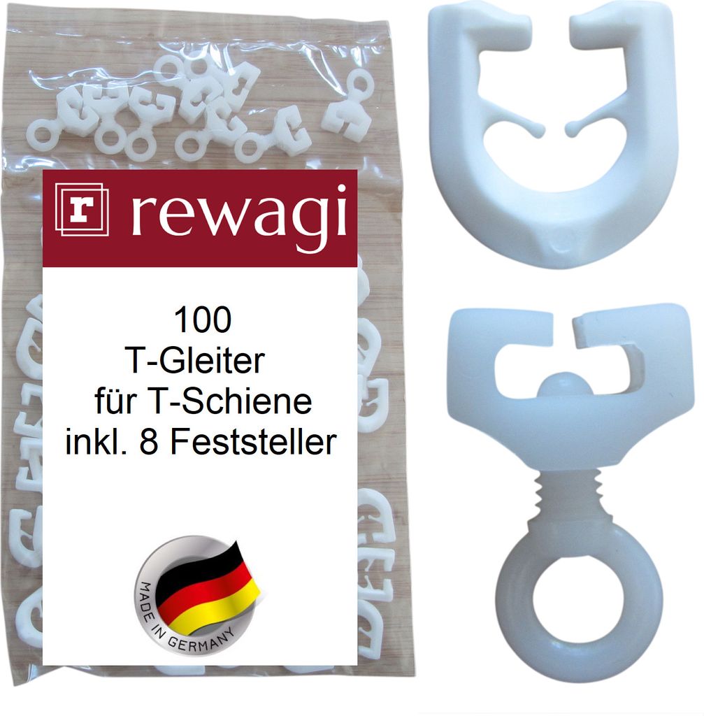 Gardinen aufhängen war noch nie so easy! Dieses Set von rewagi hat alles, was du brauchst: 100 Drehgleiter und 100 Gardinenhaken - insgesamt 200 Teile! Aus robustem Kunststoff, made in Germany. Die Drehgleiter lassen sich einfach in die Schiene ein- und ausdrehen, kein Gefummel mit Ausklinklöchern. Passen für Laufnutten von 5,8 bis 6,3 mm - also für die meisten Standard-Schienen. Super einfach zu montieren, auch wenn du kein Heimwerker-Profi bist. Die weiße Farbe sieht schick aus und fällt nicht auf. Deine Gardinen hängen gleichmäßig und sehen einfach ordentlicher aus. Perfekt für alle Zimmer - Wohnzimmer, Schlafzimmer, Kinderzimmer. Hält ewig und ist super unkompliziert. rewagi steht für Qualität aus Deutschland. Einfach die alten Haken raus, die neuen rein - schon sieht alles viel besser aus. So macht Gardinenwechseln Spaß!