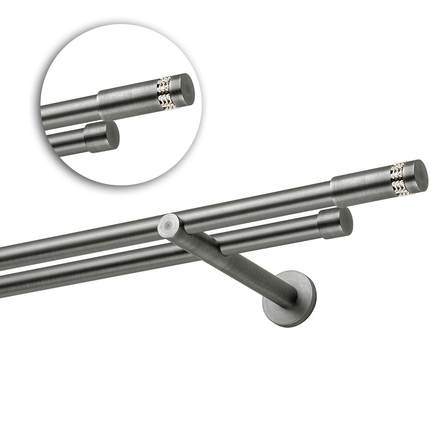 Gardinenstange 360cm Edelstahl Optik - Doppelläufige Vorhangstange Mit Kostenloser Kürzung