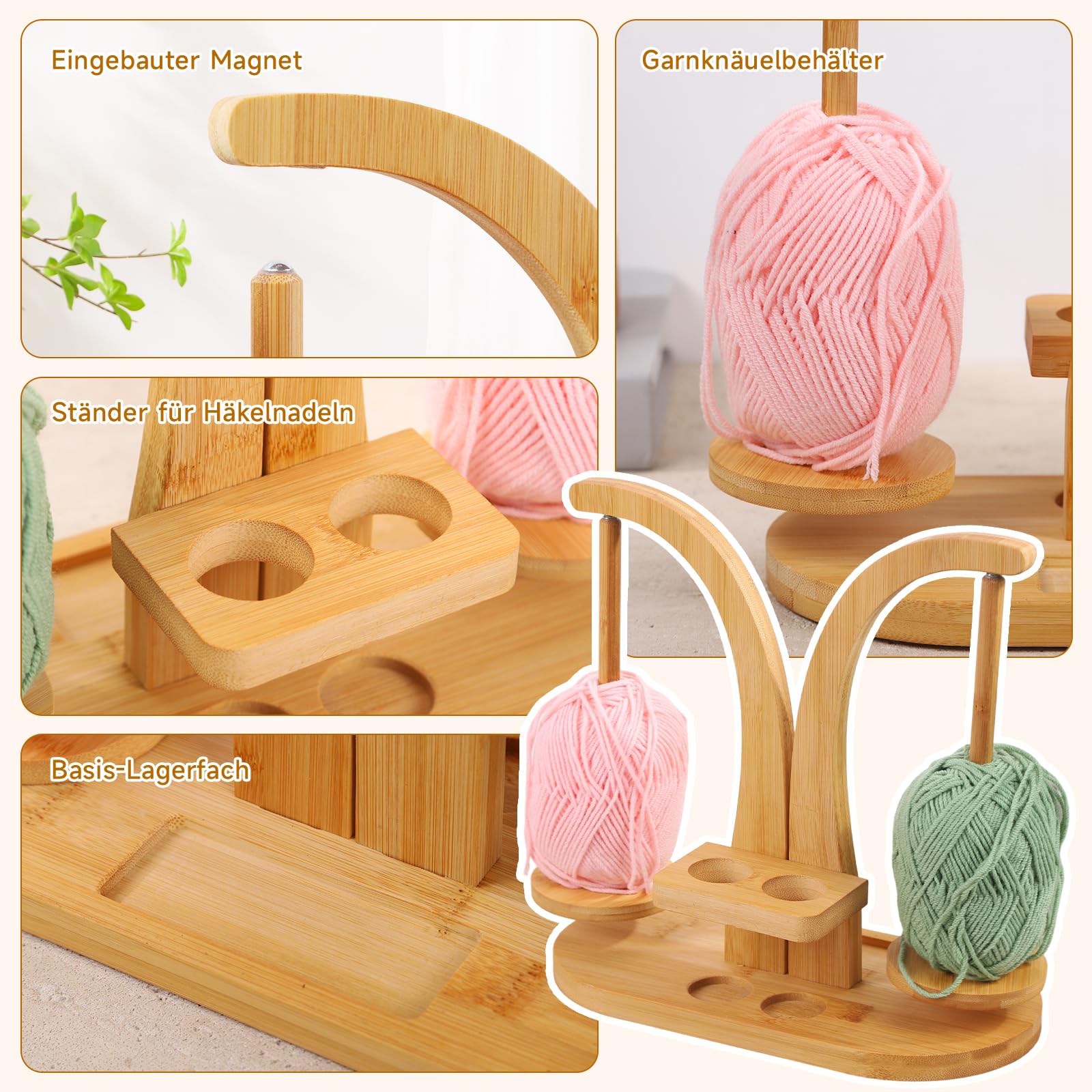 • Wollabwickler Aus Holz - Magnetischer Garnhalter Mit 360° Drehung Für Strickfans