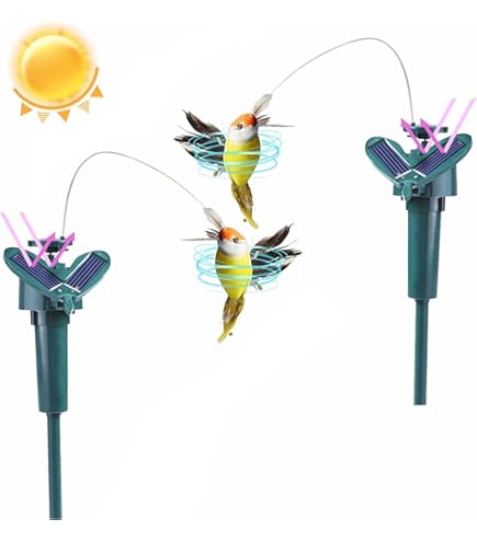 Mit zwei Stromquellen: Solar für tagsüber, AA-Batterie (nicht im Lieferumfang) für die Nacht. Der Vogel bewegt sich anmutig, der Schmetterling hat lebensechten Duplex-Druck.