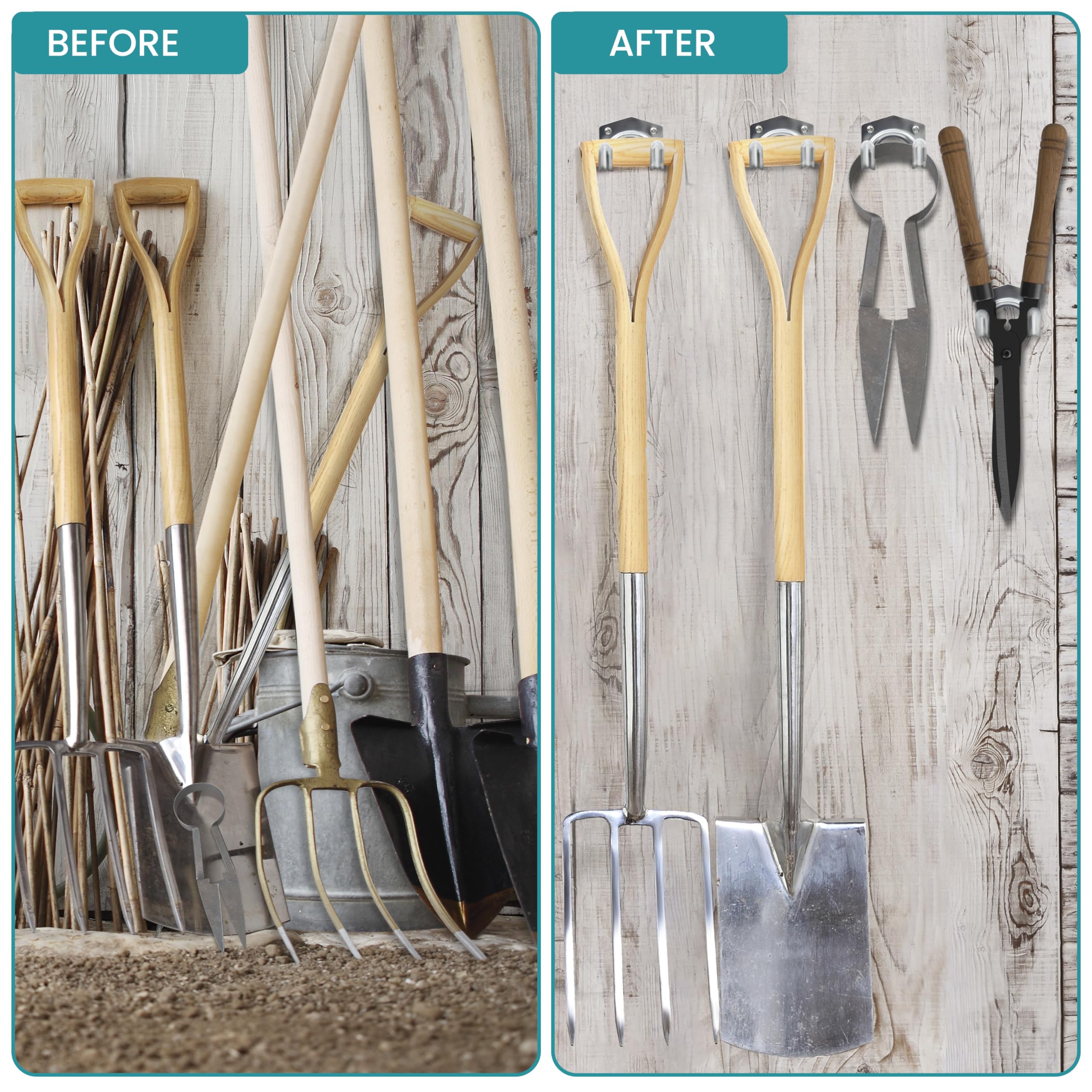 Egal ob Gartengeräte, Fahrräder, Küchenutensilien oder Sportequipment - diese Haken organisieren alles. Perfekt für Garage, Garten, Keller, Fitnessraum oder sogar den Balkon. Endlich mehr Platz und alles griffbereit!