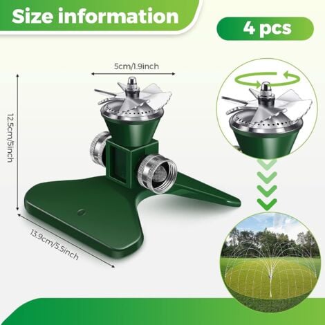 • Garten Sprinkler 360 Grad - 3 Arme Verstellbar Für Bis Zu 176 M²