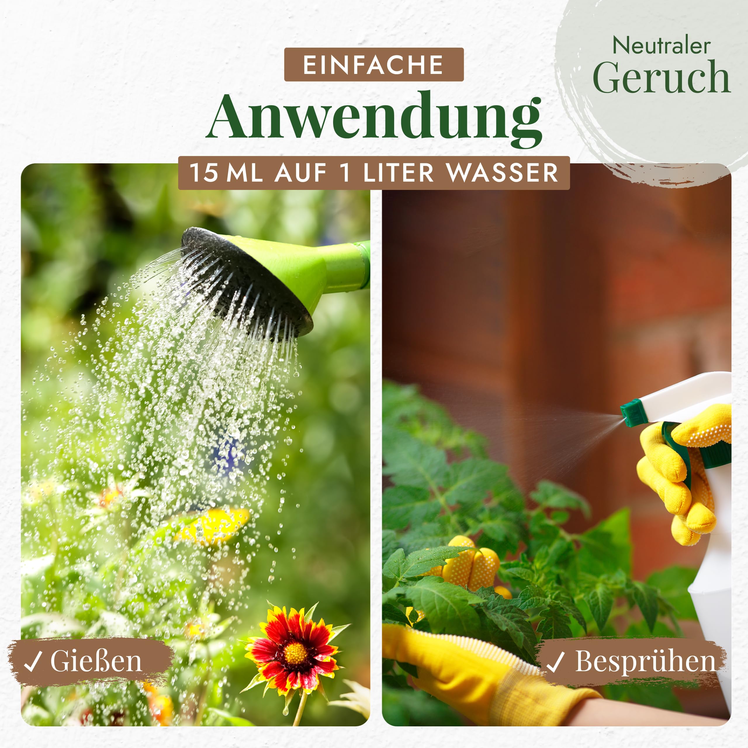 Gib deinen Pflanzen den Power-Boost den sie verdienen! Der Gartenkorn Bio Pflanzen-Booster ist der natürliche Weg zu gesunden, kräftigen Pflanzen. Ob Zimmerpflanzen, Obst, Gemüse, Kräuter oder Gartenpflanzen - dieser organische Flüssigdünger versorgt sie mit allen wichtigen Nährstoffen. Besonders praktisch für Gemüsebeete, Hochbeete und Topfpflanzen. Das organische Pflanzenserum verbessert nicht nur die Nährstoffversorgung, sondern auch die Bodenstruktur und Wurzelbildung. So wachsen deine Pflanzen kräftiger und widerstandsfähiger. Einfach in der Anwendung: entsprechend der Dosieranleitung dem Gießwasser beifügen und die Pflanzen damit wässern. 100% biologisch, ohne chemische Zusätze - gut für deine Pflanzen und die Umwelt. Mit der 1000ml Flasche hast du lange was von deinem grünen Daumen!