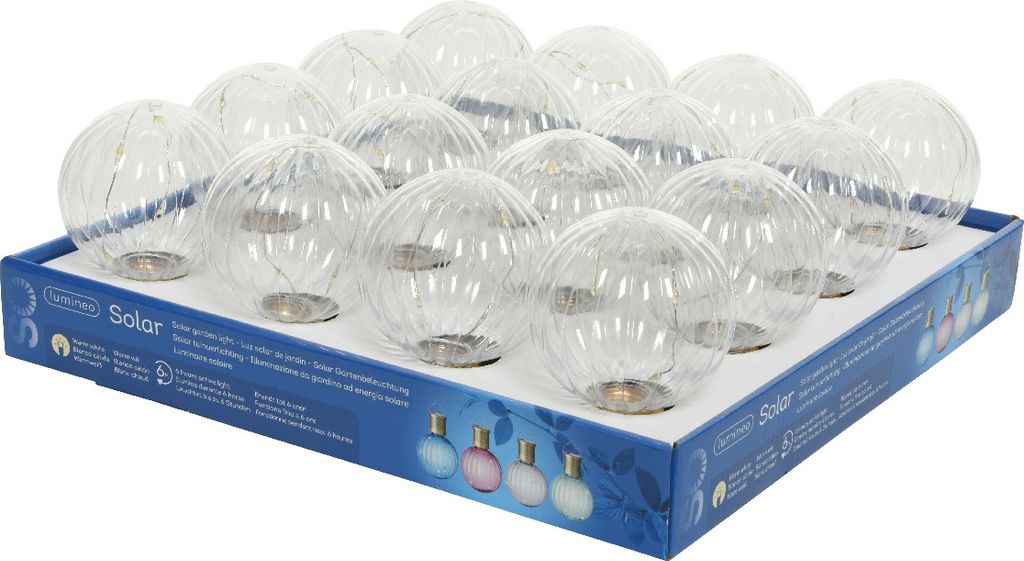 Jede Leuchte hat 7,8cm Durchmesser und ist 11,2cm hoch. In transparentem Kunststoff sehen sie aus wie schwebende Lichtkugeln.