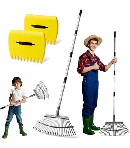 • CJYMMFAN Gartenrechen Mit Teleskopstiel - Edelstahl Laubrechen 170cm