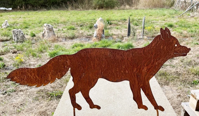 Dieser niedliche Fuchs aus Edelrost macht deinen Garten oder Balkon gleich viel gemütlicher! Mit stolzen 59cm Höhe und 29,5cm Breite ist er ein echter Hingucker in Blumenbeeten, Kübeln oder einfach im Rasen. Das Motiv selbst ist etwa 40cm hoch - also schön groß, um gut zur Geltung zu kommen. Der doppelte Erdspieß sorgt für bombenfesten Halt, selbst bei windigem Wetter. Die wunderschöne Edelrost-Patina verleiht dem Fuchs diesen besonderen, rustikalen Charme, und das Material ist komplett wetterfest. Egal ob Regen, Sonne oder Schnee - diesem Fuchs macht nichts aus! Perfekt für Gartenliebhaber, die ihrem Außenbereich etwas Persönlichkeit verleihen wollen. Kombinierbar mit anderen Edelrost-Figuren oder auch solo ein absoluter Eyecatcher. Einfach in die Erde stecken und sich an dem Anblick erfreuen! Übrigens: Auch auf der Terrasse oder dem Balkon macht sich der Fuchs super - probier's aus!