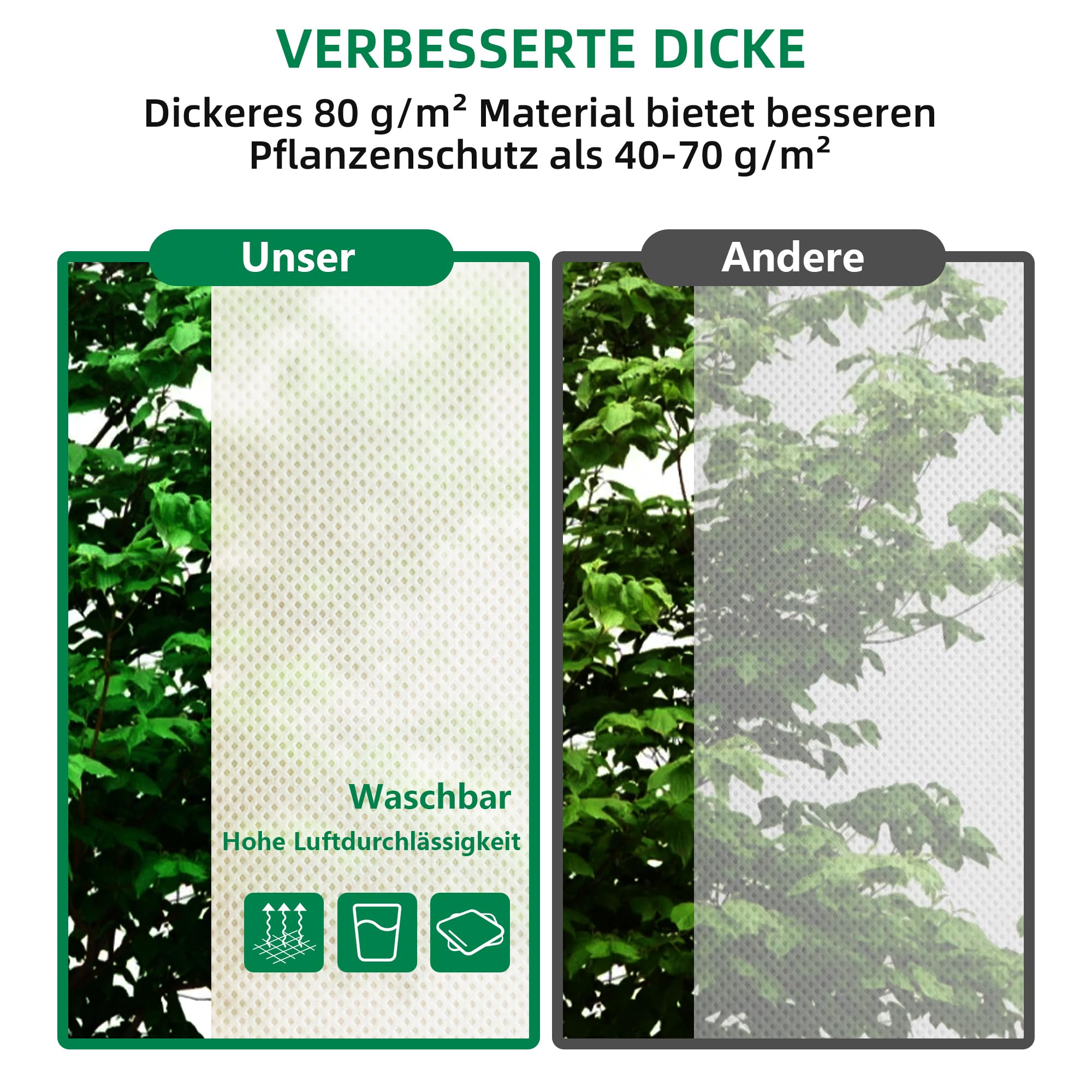 Atmungsaktiv und lichtdurchlässig (60%), sodass deine Pflanzen weiter wachsen können. Im Sommer auch als Schutz vor Sonne und Schädlingen nutzbar.