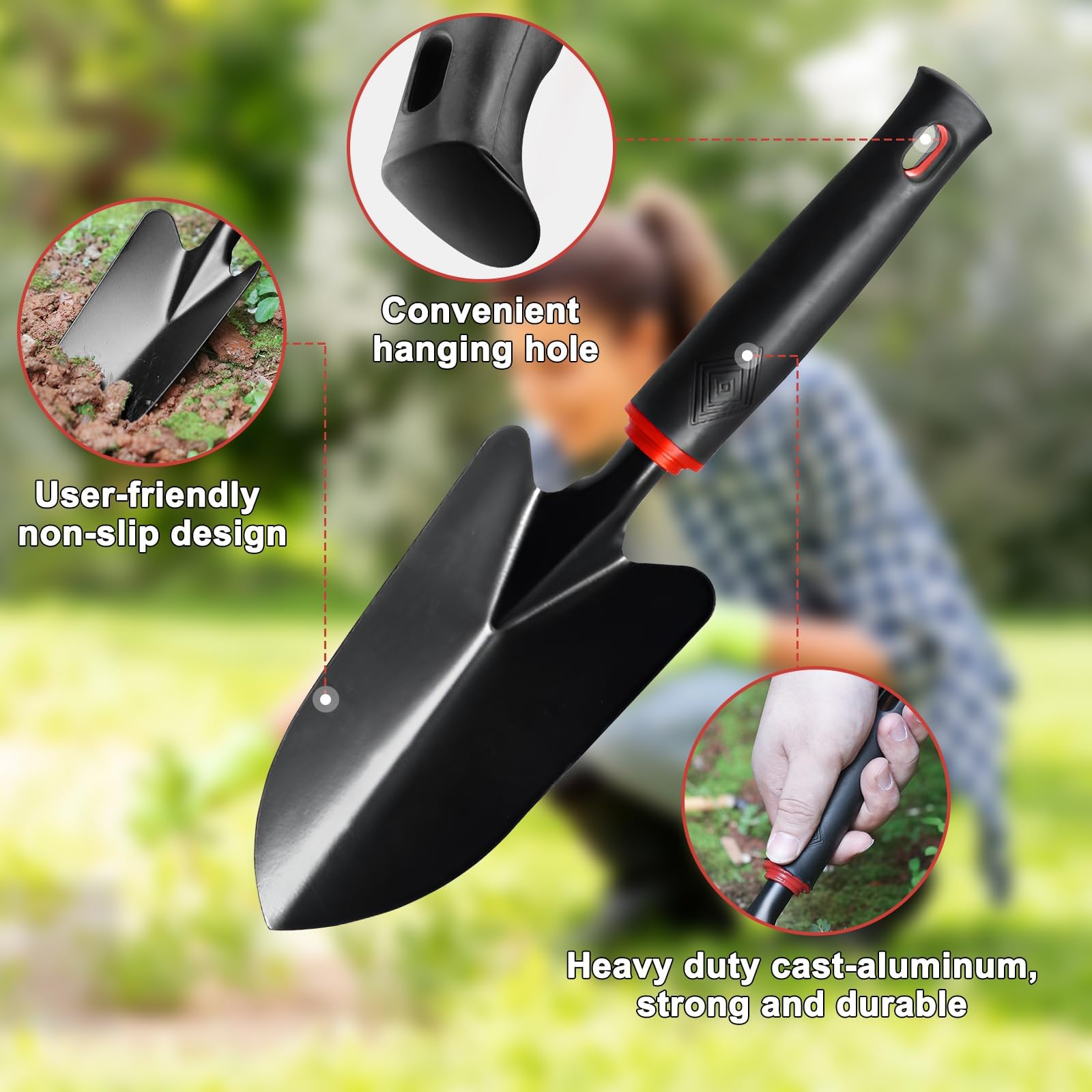 Für alle Hobby-Gärtner: Dieses 3-teilige Gartenwerkzeug Set macht die Arbeit im Beet zum Vergnügen! Enthalten sind eine Handkelle zum Pflanzen, eine Gartenkelle und ein Unkrautstecher - also alles, was du für die Basics brauchst. Die Werkzeuge sind aus rostfreiem Stahl gefertigt und haben ergonomische Griffe, die deine Hände und Arme schonen. Besonders praktisch: Die rutschfesten Griffe mit Aufhängelöchern - so kannst du die Teile einfach aufhängen und hast sie immer griffbereit. Die schwarze Beschichtung auf den Schaufelköpfen verhindert Korrosion, egal bei welchem Wetter du im Garten arbeitest. Ob du Setzlinge verpflanzen, Unkraut entfernen oder einfach nur Erde lockern willst - mit diesem Set geht alles leichter von der Hand. Das flache Unkrautbekämpfungswerkzeug ist super für die Gartenpflege, während die kleine Hanke Schutt und Unkraut effektiv entfernt. Perfekt für Gemüsegärten, Blumenbeete oder einfach nur für deine Topfpflanzen auf dem Balkon. Mit null Wartungsaufwand und langer Lebensdauer ist dieses Set ein echter Begleiter für jede Gartensaison!