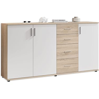 Boah, diese Garvee Kommode mit 4 Schubladen ist einfach praktisch! Ob für Klamotten, Spielzeug oder Bettwäsche - in den großen Schubladen ist alles ordentlich verstaut. Die Schienen laufen super smooth, und das Rauten-Design auf den Fronten sieht einfach stylisch aus. Es gibt sie in Weiß, Rosa oder Schwarz - da findet jeder seinen Look. Aus robustem MDF, kratzfest und easy zu reinigen. Macht in jedem Raum was her - im Schlafzimmer, Wohnzimmer oder sogar im Flur als Schuhschrank. Der Zusammenbau ist echt einfach, alles dabei in der Box. Selbst als DIY-Anfänger kriegst du das hin! Stapelbar und platzsparend - perfekt für kleine Wohnungen. Sieht aus wie teuer Möbel, kostet aber nicht die Welt. Wenn du mehr Ordnung brauchst und was Hübsches für deine Bude suchst, bist du hier goldrichtig. Ein Möbelstück, das einfach funktioniert und dazu noch gut aussieht - was will man mehr?