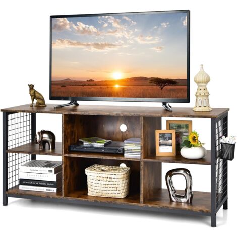 Garvee TV-Schrank Landhausstil - Lowboard Dunkle Eiche Mit Metallgestell