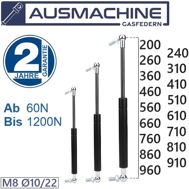 Hey, diese RhedexX Gasdruckfeder ist ein echtes Arbeitstier! Mit M6 Winkelgelenken an beiden Enden - super einfach zu montieren. Länge: 240mm, Hub: 75mm und eine kräftige Ausschubkraft von 350N (das sind etwa 35kg!). Der Zylinder hat 18mm Durchmesser, die Kolbenstange 8mm - robuste Verarbeitung! Kompakte Bauform, komplett wartungsfrei - einfach einbauen und vergessen! Erhältlich in schwarz oder silber-grau, je nach Geschmack. Perfekt für Klappen, Tore, Türen und vieles mehr - überall dort, wo du eine zuverlässige Öffnungs- und Schließhilfe brauchst. Die Endstücke sind abschraubbar, falls needed. Markequalität von RhedexX - da weißt du, was du kriegst! Einfach die gewünschte Variante auswählen und bestellen. Ob für Auto, Möbel oder Industrieanwendungen - diese Gasfeder macht ihren Job perfekt. Zuverlässig, langlebig und einfach praktisch!