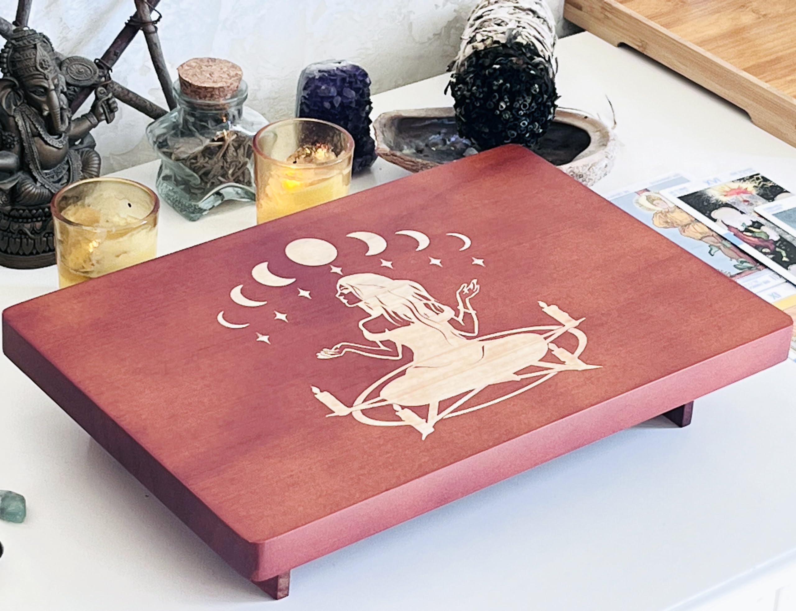 Perfekt für Zuhause, Büro oder spirituelle Praxis. Elegant genug für die Wohnzimmer-Deko, praktisch für die Aufbewahrung von Schmuck, Kristallen oder kleinen Schätzen. Auch als Räucherwerk-Unterlage geeignet.