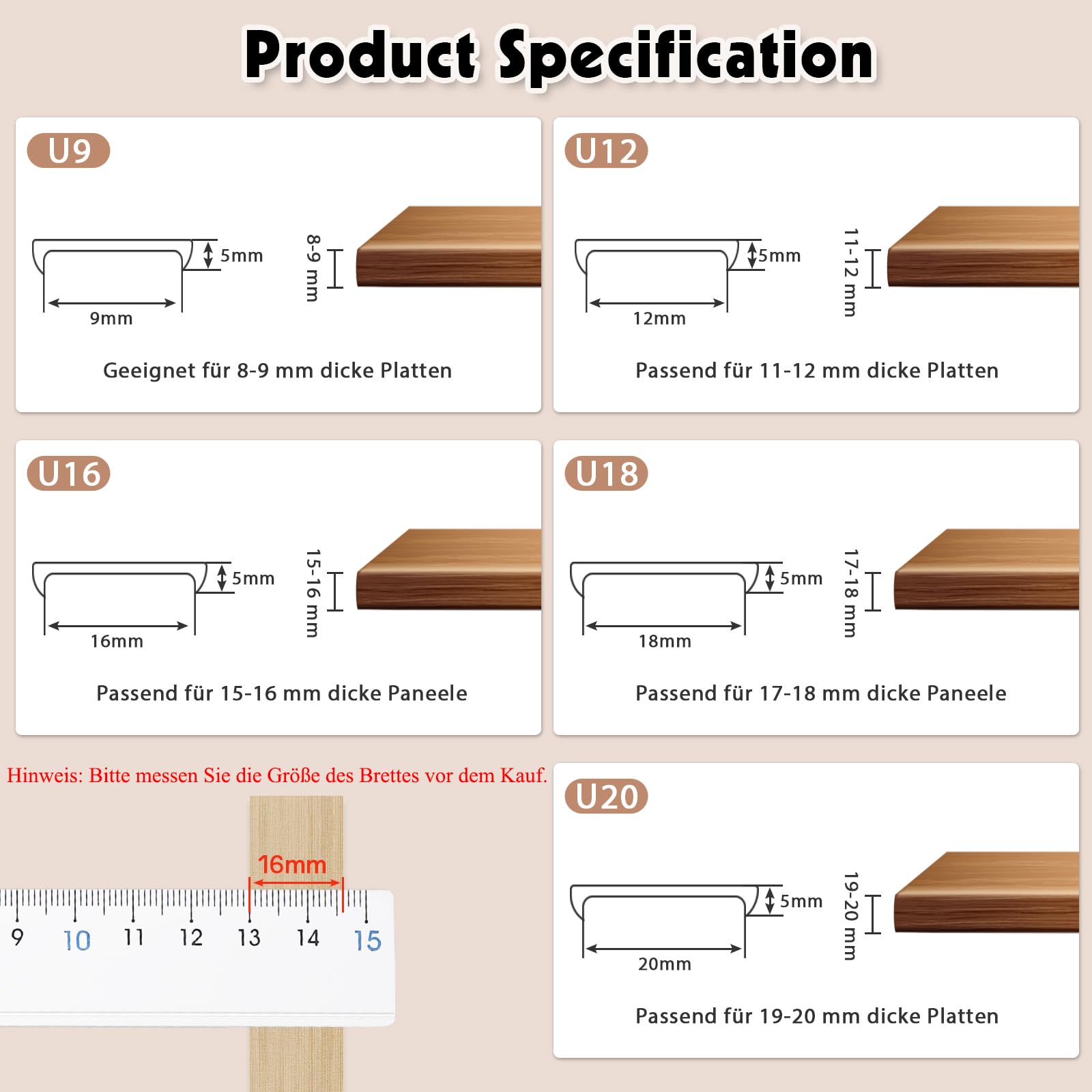 Perfekt für Schränke, Regale, Küchenzeilen und DIY-Projekte. Passt auf Holz, Metall, Marmor und viele andere Materialien.