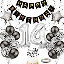 Dieses 14. Geburtstag Deko-Set in Schwarz-Silber macht jede Party zum Event! Enthalten ist alles, was du brauchst: Ein riesiger 32 Zoll '14' Folienballon, Happy Birthday Girlande, 10 Latex-Ballons, 10 Konfetti-Ballons, plus Herz und Stern Folienballons und coole Hängedeko. Die schwarz-silberne Kombination ist einfach mega stylisch und passt perfekt für Teens - ob Junge oder Mädchen. Alle Ballons sind aus hochwertigem Latex, halten ewig und können mit Helium oder Luft gefüllt werden. Sie platzen nicht so leicht und sehen einfach professionell aus. Damit dekorierst du im Handumdrehen den ganzen Partyraum. Perfekt nicht nur für Geburtstage, sondern auch für andere Feiern. Und falls mal was nicht passt: 30 Tage Geld-zurück-Garantie! Einfach das komplette Set für eine unvergessliche 14. Geburtstagsfeier.