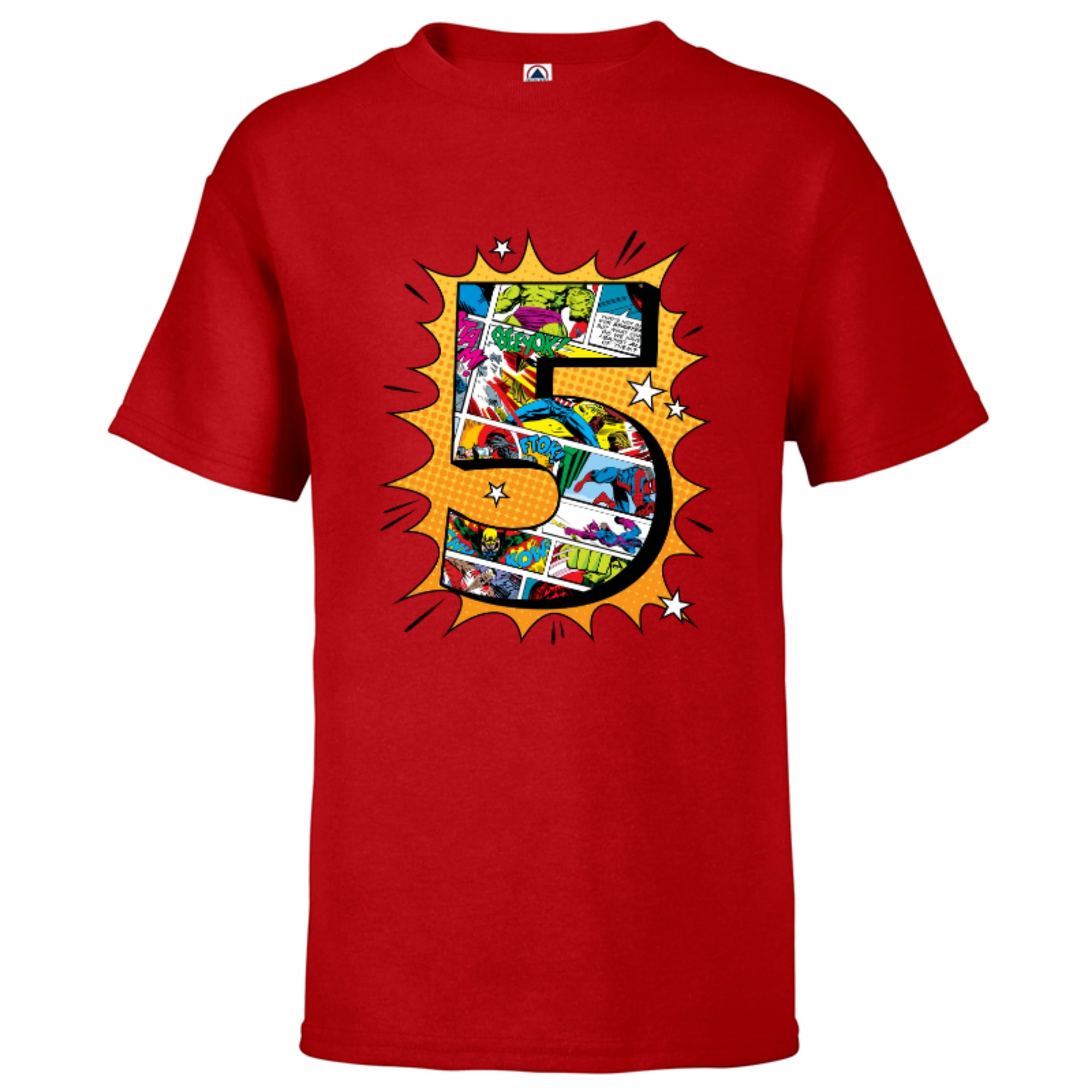 Avengers assemble! Zum 5. Geburtstag ist dieses offizielle Marvel Avengers T-Shirt das perfekte Geschenk für kleine Superhelden-Fans. Offiziell lizenziertes Merchandise mit der Nummer MRVL10827E. \\n\\nDas Shirt zeigt die ikonischen Avengers-Charaktere und ist speziell für Kindergeburtstage gestaltet. Aus weichem, bequemem Material gefertigt das angenehm auf der Haut liegt. Der klassische Schnitt und der doppelt genähte Saum garantieren lange Haltbarkeit. \\n\\nPerfekt für die Geburtstagsparty, aber auch für den Kindergarten oder die Freizeit. Dein kleiner Avengers-Fan wird sich riesig freuen! Zeigt die Helden aus den Marvel Comics: Iron Man, Captain America, Thor, Hulk und viele mehr. \\n\\nEin ideales Geschenk für alle die ihren 5. Geburtstag feiern und echte Marvel-Fans sind. Mach den Geburtstag deines Kindes unvergesslich mit diesem coolen Avengers Shirt!