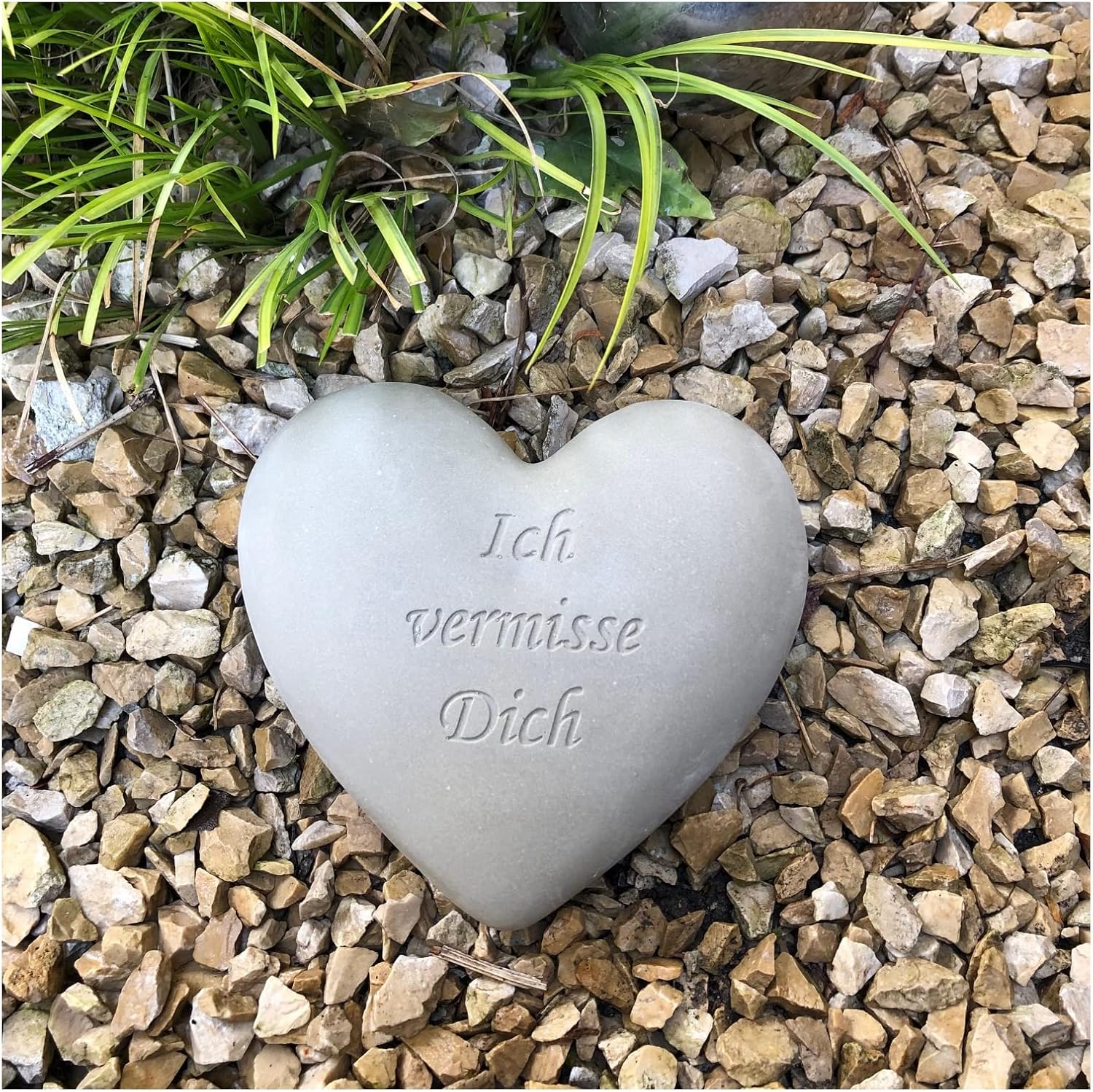 Ein würdevolles Andenken für geliebte Menschen. Dieses Grabherz aus hochwertigem Steinguss trägt die einfühlsame Aufschrift 'Wir vermissen Dich' mit zarter Rosenranke. Mit den Maßen 10x10x4cm ist es perfekt zum Ablegen auf dem Grab. In dezentem Naturgrau gefertigt - jede Figur ein Unikat durch handwerkliche Herstellung. Luftbläschen in der Oberfläche sind kein Mangel, sondern Zeichen echter Handarbeit. Schlicht und ergreifend - genau das richtige um Trauer und Verbundenheit auszudrücken. Ein tröstliches Symbol der Erinnerung für alle, die uns vorangegangen sind.