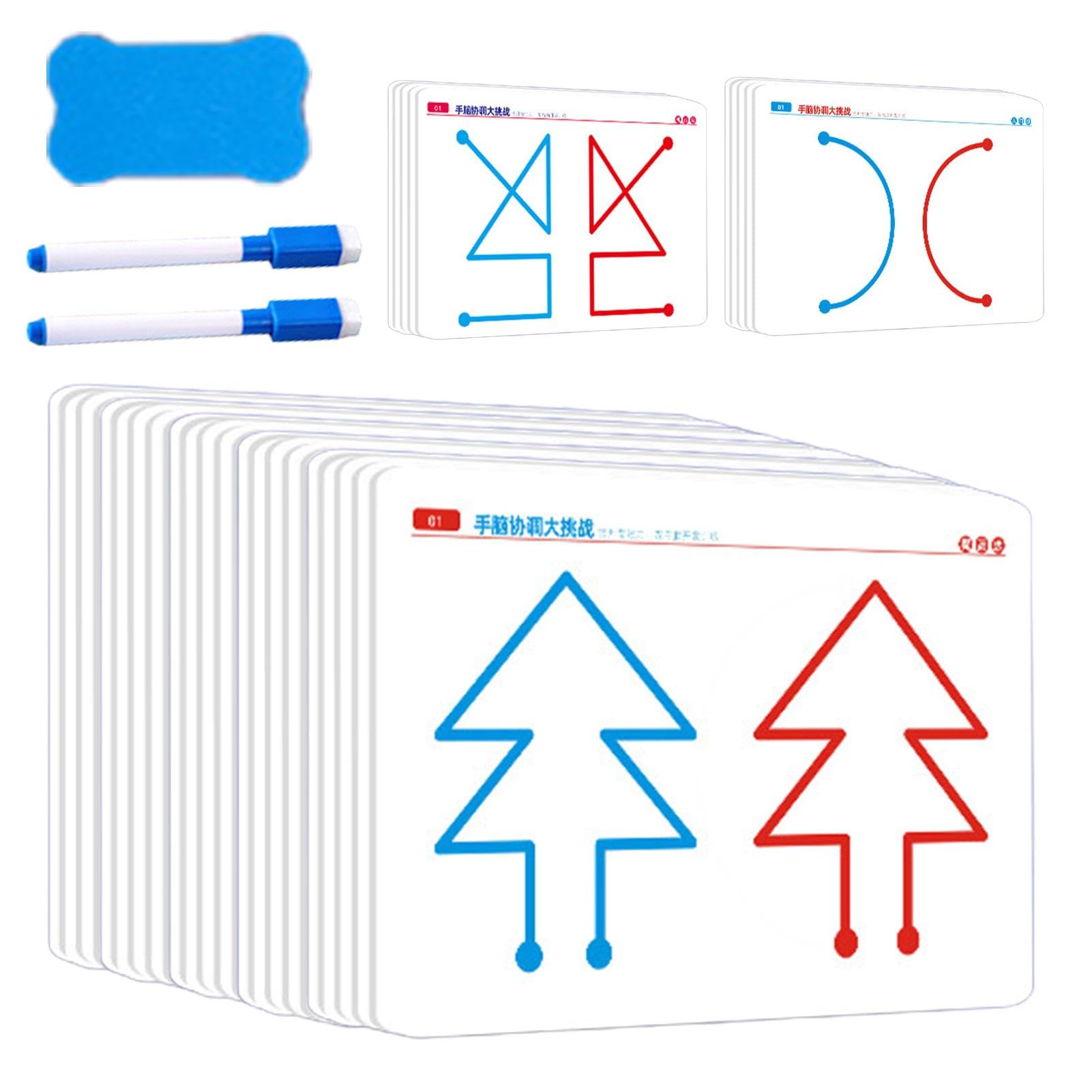 Fördere die kognitive Entwicklung deines Kindes mit diesem genialen Gehirntrainings-Kartenset! Mit 20 Karten und 40 Spielstufen von leicht bis schwer - für anhaltenden Spielspaß. Abgerundete, doppelseitig laminierte Karten aus dickem Karton - sicher und langlebig. Fördert die Hand-Gehirn-Koordination, Feinmotorik und die Entwicklung beider Gehirnhälften. Im Set enthalten: 20 Trainingskarten, 2 Stifte und 1 Radiergummibrett. Wissenschaftlich gestaltet für unterhaltsames Lernen und tolle Eltern-Kind-Interaktion. Ein perfektes Geschenk für Geburtstage oder Feiertage. Dein Kind wird dieses spannende Lernspiel lieben!
