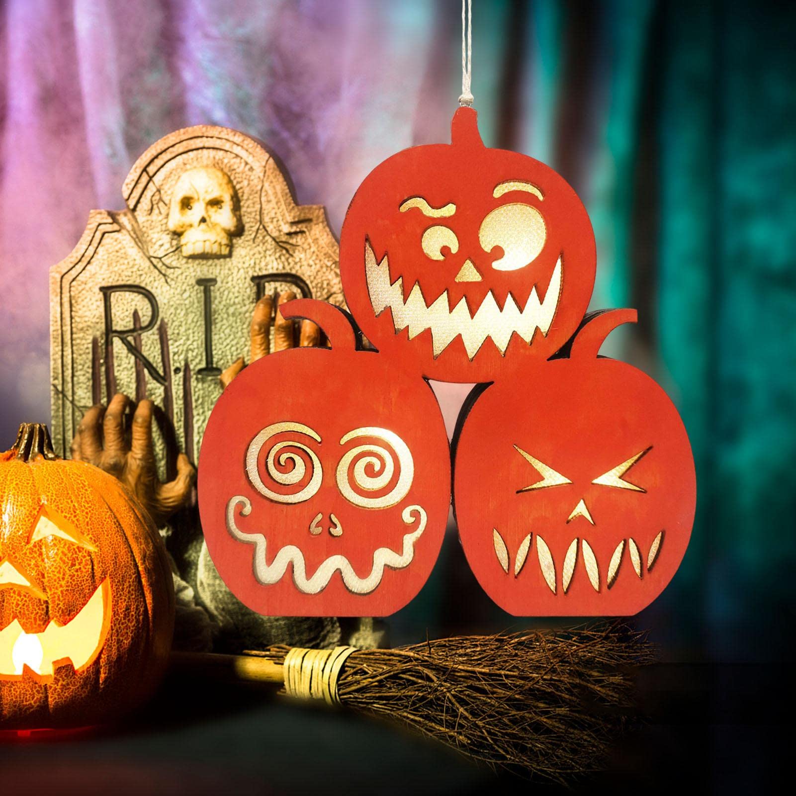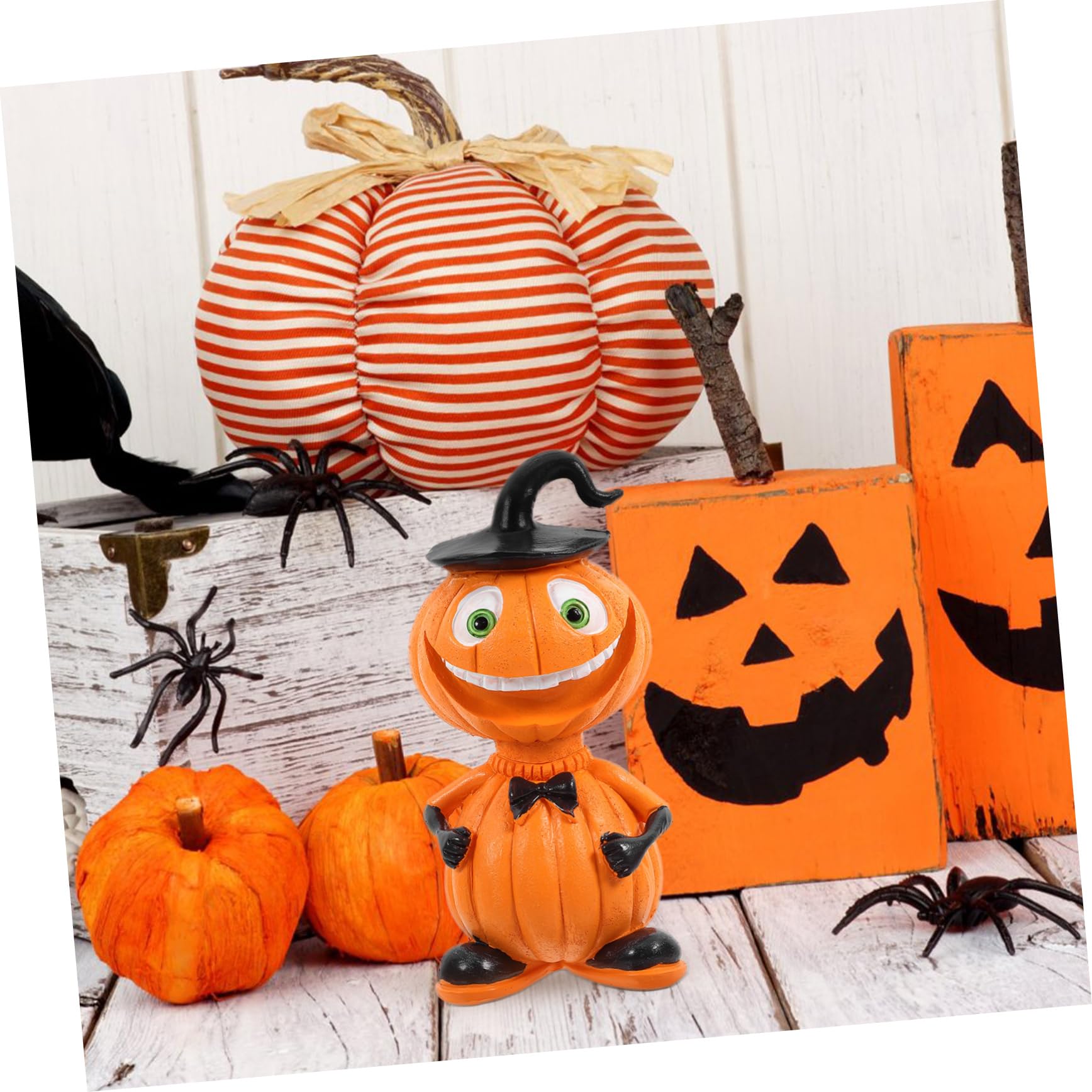 Boo! Diese süße Halloween-Kürbis-Licht Figur bringt sofort gruselige Stimmung in dein Zuhause! Die 15cm große Figur aus robustem Harz hat dieses typische Halloween-Orange und sieht super niedlich aus. Perfekt für den Esstisch, das Bücherregal oder als Blickfang auf dem Kaminsims. Sie schafft sofort diese geheimnisvolle Halloween-Atmosphäre, die jede Party richtig aufpeppt. Das Beste: Du kannst sie jedes Jahr wieder verwenden, da das Material langlebig ist und die Farbe nicht verblasst. Kombiniere sie mit anderen Halloween-Dekos für den ultimativen Grusel-Look oder verschenke sie an Halloween-Fans - die werden sich riesig freuen! Einfach hinstellen und schon ist die Halloween-Stimmung da!