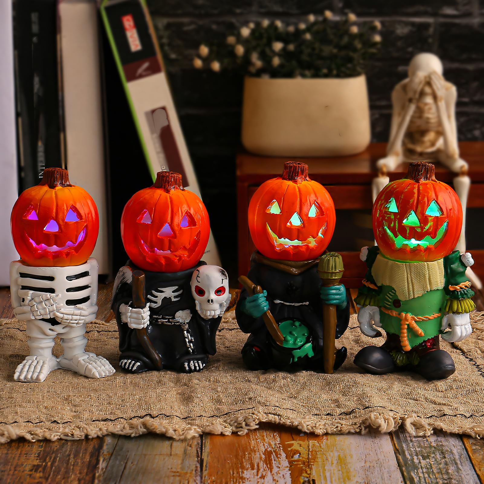 Halloween Tischdekoration Kürbis Licht | Gelbe Harz Figur 15cm Für Party & Home Decor