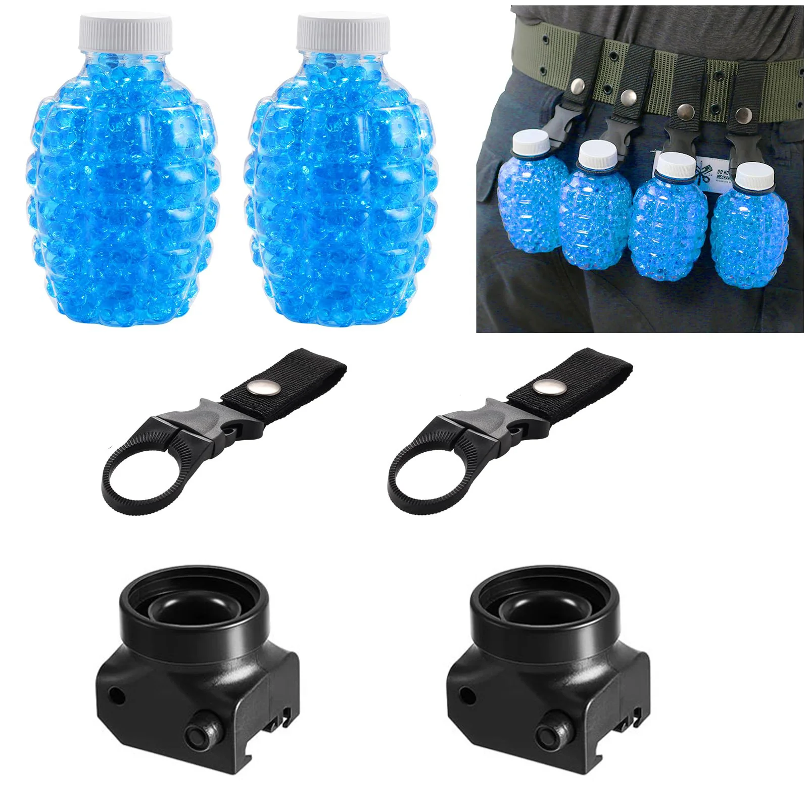 Im Set sind 6 Flaschen und 6 Verbindungsstücke enthalten - alles was du brauchst, um deine Gelblaster-Perlen ordentlich zu organisieren. Die Verbindungslöcher haben einen Außendurchmesser von 32 cm, passen also zu den gängigen Modellen.