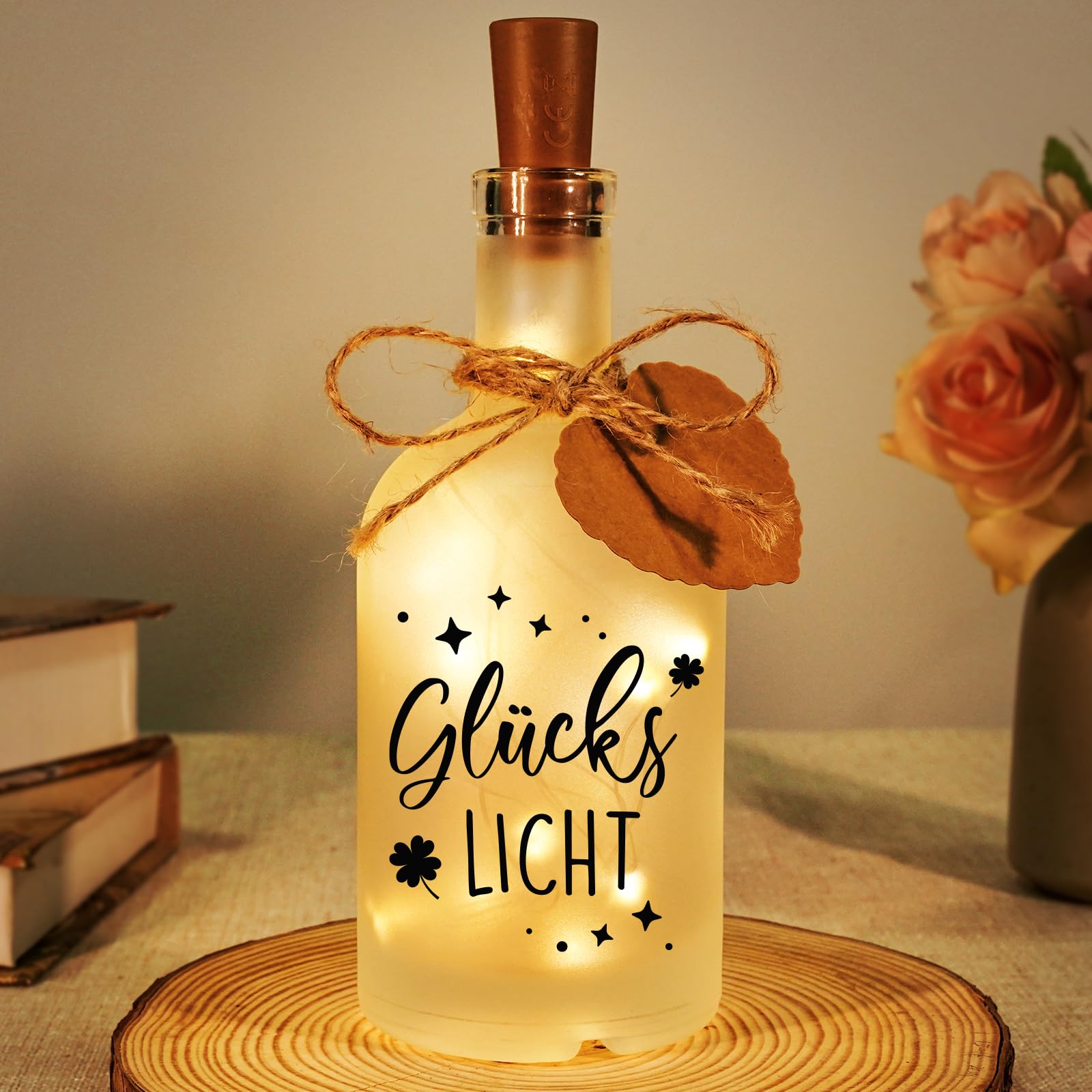 Auf der Suche nach einem besonderen Geschenk? Diese süße Glückslicht-Flasche ist perfekt für Geburtstage, Hochzeiten oder einfach als Überraschung für die beste Freundin! Mit 9,5x8x5 cm passt sie in jede Handtasche. Inklusive Märchen-Lichterkette, Glitzer, Hanfschnur und Anhänger. Einfach die LED-Kette aktivieren, Glitzer hinzufügen und schon verwandelst du jede Weinflasche in eine magische Deko! Das 'Happy Feedback'-Motiv überbringt deine lieben Wünsche auf charmante Weise. Ob als romantische Tischdekoration, gemütliche Nachtbeleuchtung oder Party-Highlight - dieses Flaschenlicht sorgt für strahlende Augen. Perfekt für Jugendweihe, Abschlussfeiern oder Weihnachten. Mach jemandem eine Freude mit diesem einzigartigen Geschenk!