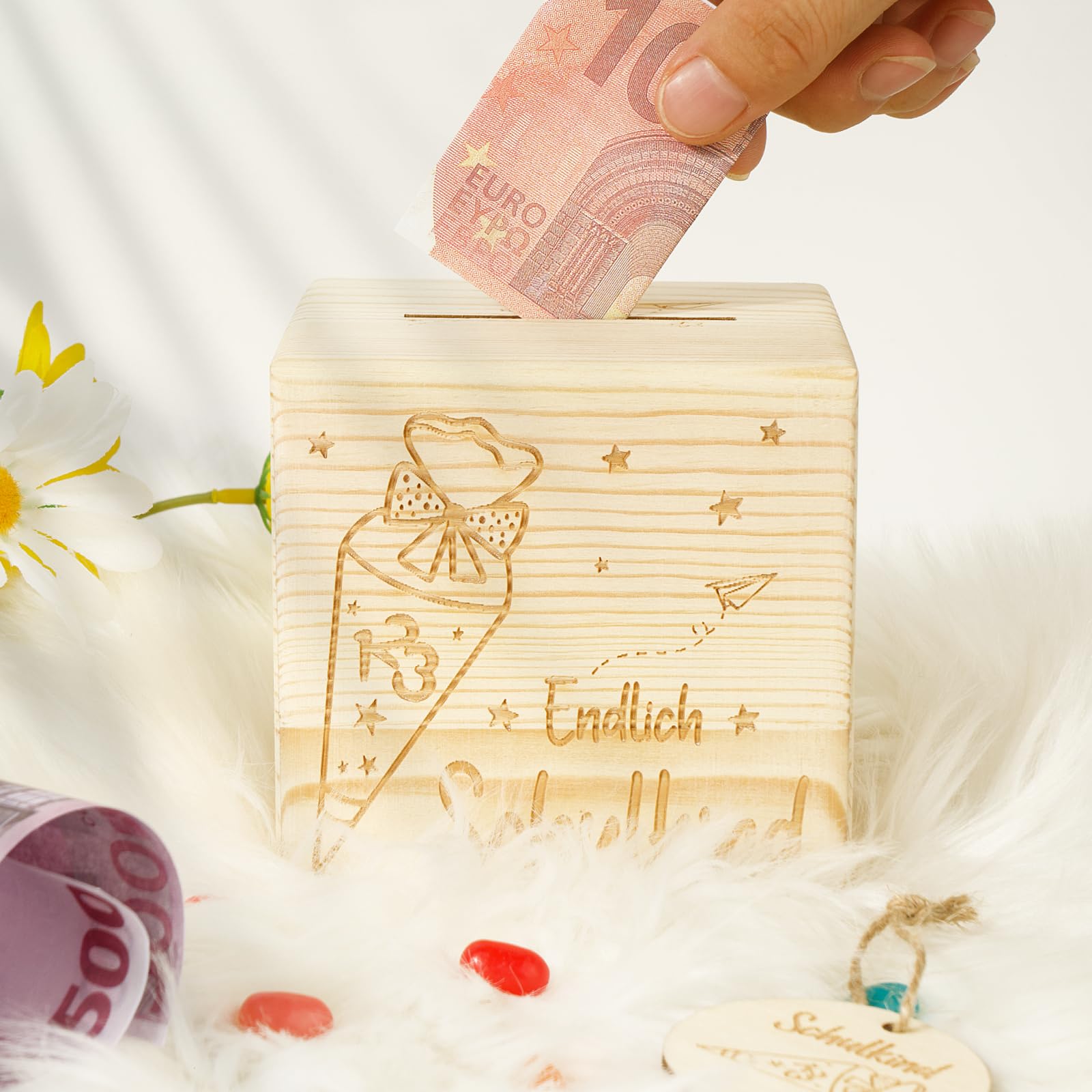 Zur Einschulung 2025 was Besonderes verschenken! Dieses süße Holz-Geldgeschenk von BOFUNX ist perfekt für Jungen und Mädchen. Im Set enthalten: Holz-Anhänger 'Du bist 1. Klasse', Hanfseil, Grüßkarte, 2x Schulkind 2025 Aufkleber und ein Kunststoff-Reagenzglas (16x3,5x2,5cm). Einfach Geld oder Gutscheine in die Flasche stecken, Aufkleber drauf - schon hat man ein persönliches Geschenk das in Erinnerung bleibt! Super als Schultüten-Füllung oder als Hauptgeschenk zur Einschulungsparty. Aus umweltfreundlichem Holz gefertigt - sicher und langlebig. Macht mehr her als einfach nur ein Umschlag mit Geld! Die Kinder lieben die süße Aufmachung und freuen sich über das besondere Präsent. Perfekt für Eltern, Großeltern oder Paten die zur Einschulung was Einzigartiges verschenken wollen. Einfach zu gestalten und kommt immer gut an! So wird der erste Schultag unvergesslich und das Geschenk bleibt lange in guter Erinnerung. Einfach bestellen und dem Schulkind eine riesige Freude machen!
