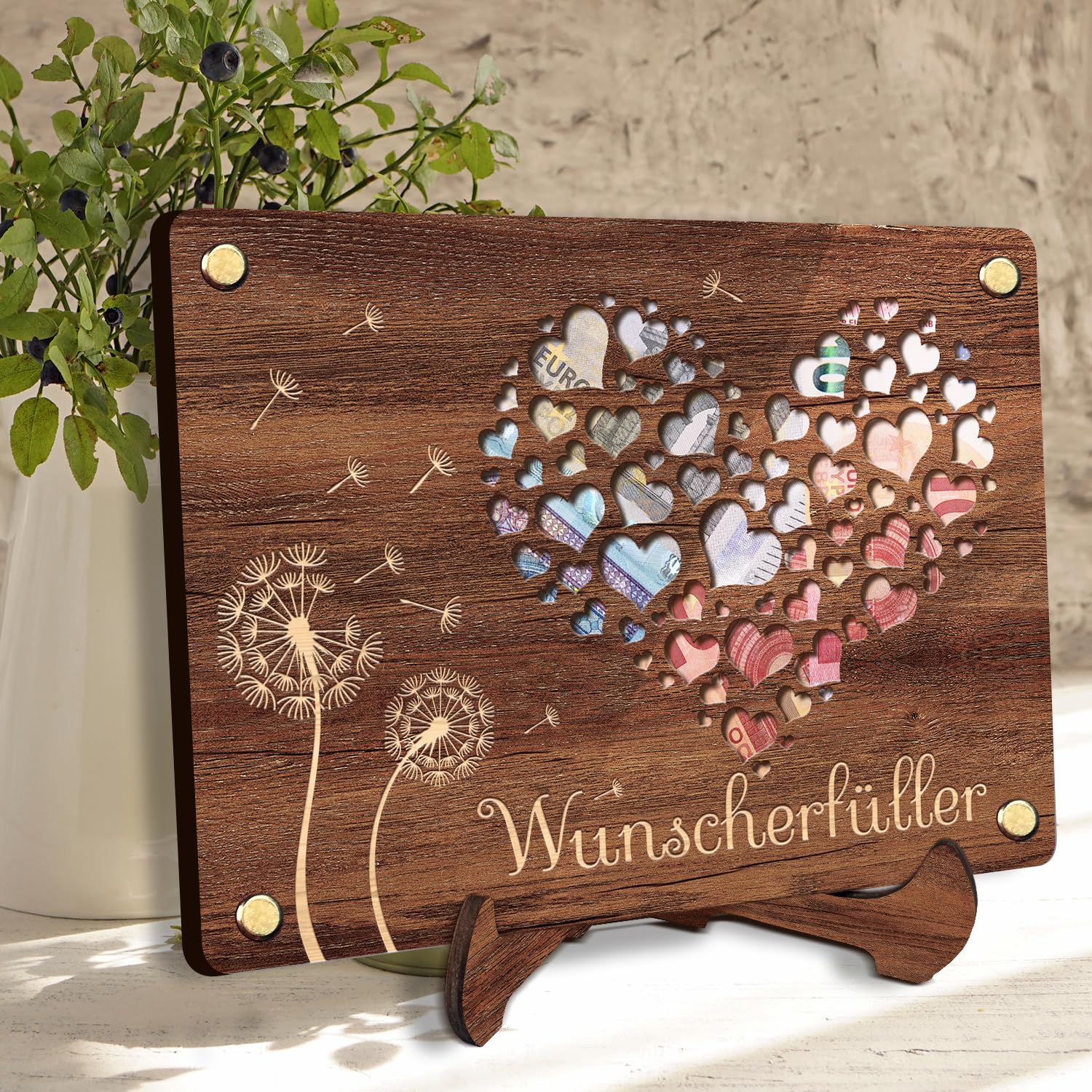 Das perfekte Hochzeitsgeschenk - praktisch und emotional zugleich! Diese edle Holzkarte kombiniert ein Geldgeschenk mit persönlichen Wünschen für das Brautpaar. Aus hochwertigem, robustem Holz gefertigt - viel schöner als langweilige Papierkarten. Du kannst sie individuell beschreiben - mit liebevollen Grüßen, persönlichen Geschichten oder guten Wünschen für die gemeinsame Zukunft. Im Set inklusive: passender Umschlag für sicheren Transport und schöne Präsentation. Ob persönlich überreicht oder per Post - kommt garantiert gut an. Viel mehr als nur Geld - ein echtes Erinnerungsstück, das das Brautpaar noch lange aufbewahren wird. Perfekt als Hauptgeschenk oder Ergänzung zu anderen Präsenten. Mach dem glücklichen Paar eine Freude mit diesem besonderen und persönlichen Geschenk zur Hochzeit! Einfach beschreiben, Geld beilegen und überreichen - mehr Emotionen geht nicht!