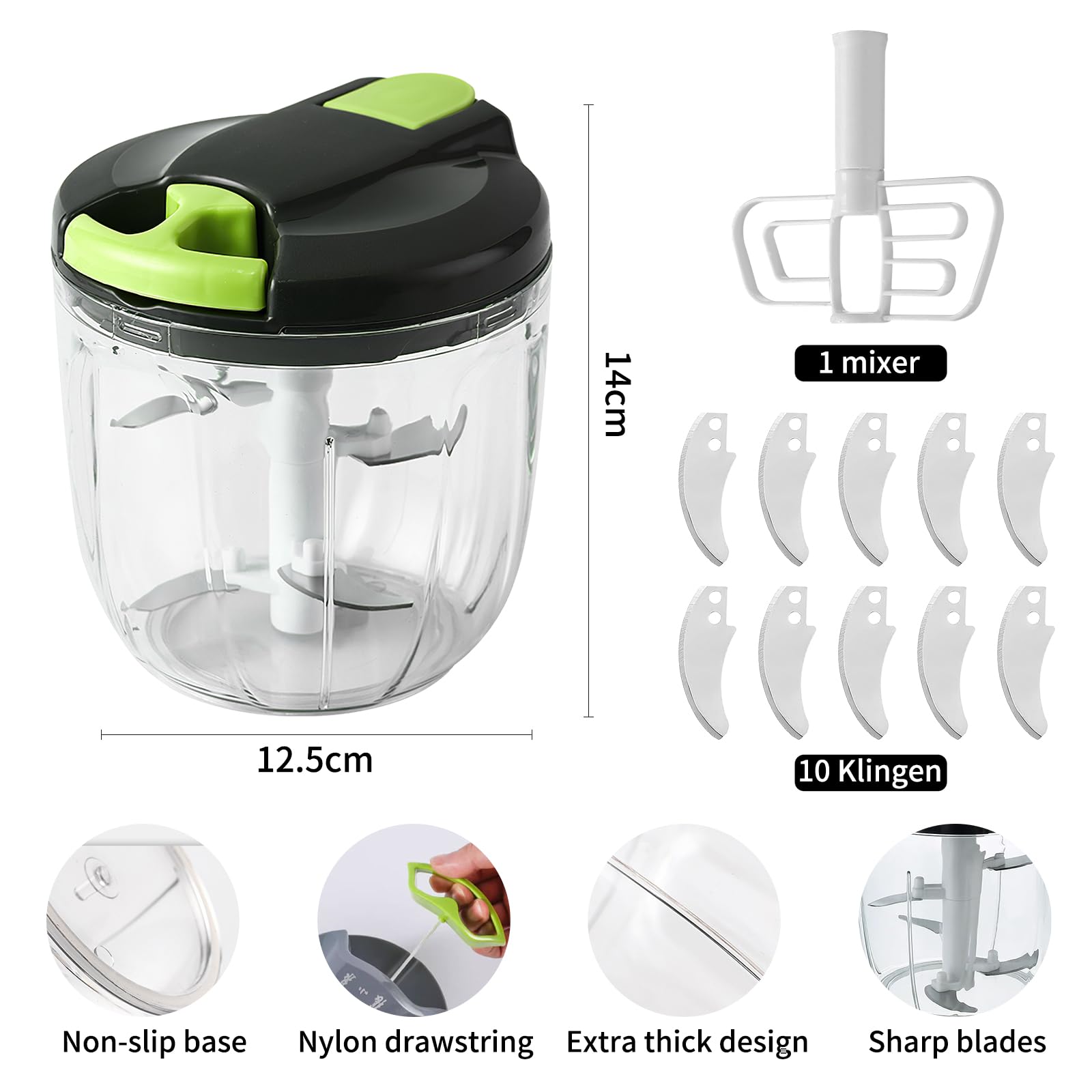 Hallo Küchen-Chefs und Hobby-Köche! 👨🍳 Dieser manuelle Gemüsehobel ist dein neuer bester Freund in der Küche - Zwiebeln schneiden ohne Tränen, in Sekunden fertig!\n\nTechnische Daten:\n• Fassungsvermögen: 900ml - groß genug für Familien\n• Klingen: 5 verschiedene - für alle Schneide-Aufgaben\n• Material: ABS Kunststoff - BPA-frei und sicher\n• Farbe: Modernes Weiß - passt in jede Küche\n• Bedienung: Manuell - keine Stromkosten\n\nWas du alles schneiden kannst:\n• Zwiebeln - endlich ohne Tränen!\n• Knoblauch - fein gehackt\n• Kräuter - Petersilie, Schnittlauch, Basilikum\n• Nüsse - für Kuchen und Desserts\n• Gemüse - Karotten, Paprika, Sellerie\n• Obst - Äpfel, Birnen, Beeren\n• Fleisch - für Frikadellen und Hack\n\nDie 5 Klingen im Detail:\n• Grobe Würfel - für Eintöpfe\n• Feine Würfel - für Salate\n• Scheiben - gleichmäßig und dünn\n• Stifte - für asiatische Gerichte\n• Püree - für Babynahrung\n\nWarum manuell besser ist:\n• Leise - kein störender Motorlärm\n• Sicher - keine scharfen rotierenden Teile\n• Einfach zu reinigen - spülmaschinengeeignet\n• Platzsparend - kein Kabel, kleine Aufbewahrung\n• Immer einsatzbereit - keine Aufladung nötig\n\nSuper einfache Bedienung:\n• Zutaten in den Behälter geben\n• Deckel schließen - sicher verriegelt\n• Hebel betätigen - ein paar Mal drücken\n• Öffnen - perfekt geschnittenes Ergebnis\n• Reinigen - unter fließend Wasser\n\nPerfekt für:\n• Vielkocher - tägliche Zeitersparnis\n• Familien mit Kindern - schnelle Mahlzeiten\n• Single-Haushalte - kleine Portionen\n• Senioren - einfache Handhabung\n• Alle die keine Tränen vergießen wollen\n\nBesondere Features:\n• Rutschfester Boden - steht sicher\n• Transparenter Deckel - siehst was passiert\n• Ergonomische Griffe - liegt gut in der Hand\n• Leicht zu demontieren - gründliche Reinigung\n• Hochwertige Klingen - bleiben lange scharf\n\nVorteile die überzeugen:\n• Zeitersparnis - Minuten statt langes Schneiden\n• Gleichmäßige Ergebnisse - wie vom Profi\n• Sicherheit - keine scharfen Messer in der Hand\n• Vielseitigkeit - für fast alle Lebensmittel\n• Langlebigkeit - hält Jahre\n\nHol dir diesen praktischen Küchenhelfer und mach Schneiden zum Kinderspiel! Ob für die schnelle Gemüsepfanne, den Salat oder die Suppe - mit diesem Hobel bist du in Sekunden fertig! Deine Küchenarbeit wird nie wieder dieselbe sein! 🔪