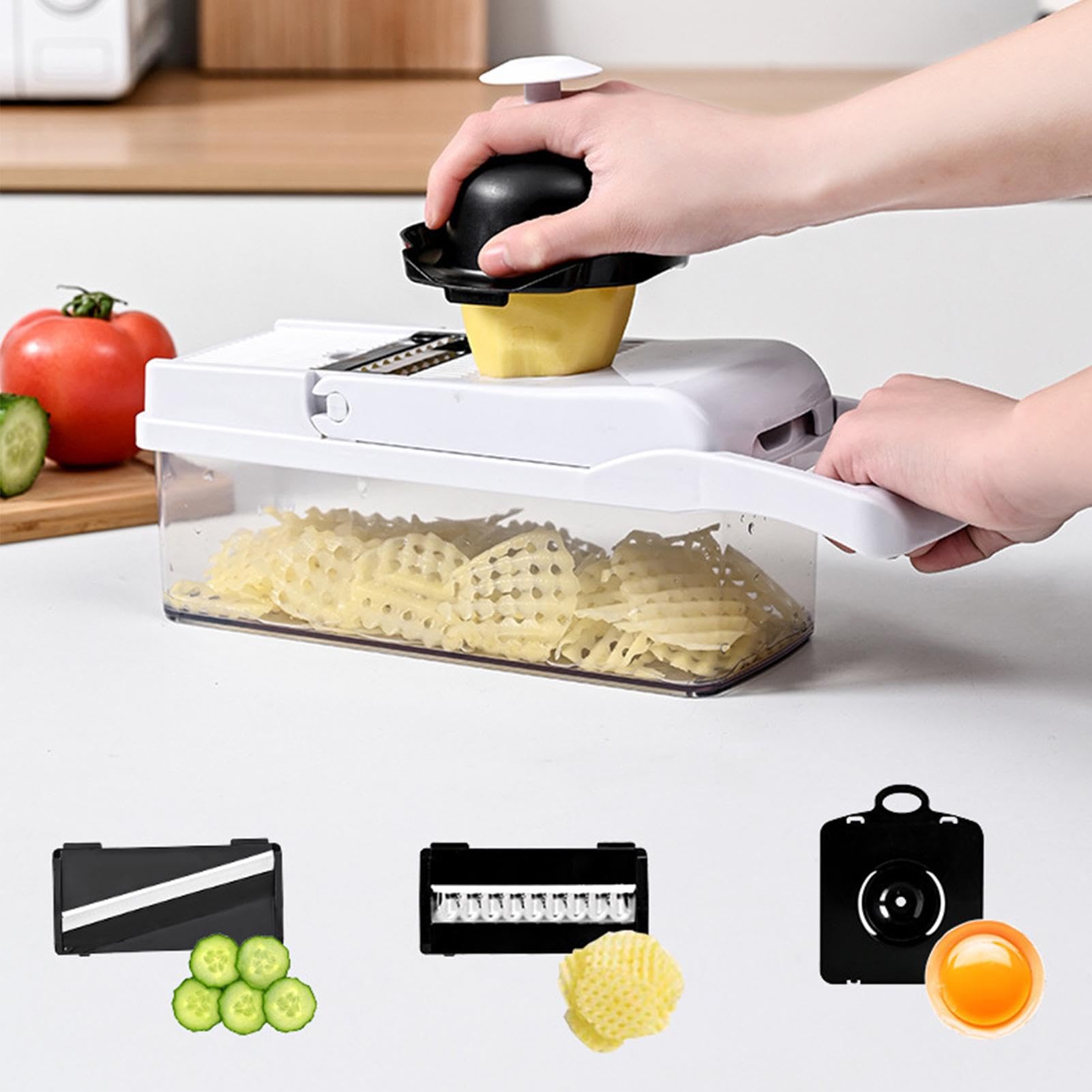 Schluss mit mühsamem Schneiden - diese 2 Obstschneider machen deine Küchenarbeit zum Kinderspiel! Aus rostfreiem Edelstahl mit 4 Schweißpunkten pro Klinge für maximale Stabilität. Einfach Apfel, Birne oder Kartoffel (bis 10cm Durchmesser) platzieren, Deckel drücken - schon hast du 12 perfekte Scheiben! Der Kern wird automatisch entfernt. Ideal für gesunde Snacks, Obstsalate, Apfelkuchen oder Babybrei. Spart Zeit und Nerven in der Küche. Mit praktischem Schutzdeckel für sichere Aufbewahrung. Achtung: Klingen sind sehr scharf - mit beiliegender Bürste leicht zu reinigen. Perfekt für Erdbeeren, Kiwis, pochierte Eier und vieles mehr. Ein unverzichtbarer Helfer für alle, die schnell und gleichmäßig schneiden wollen. Küchen-Zauber für Groß und Klein!