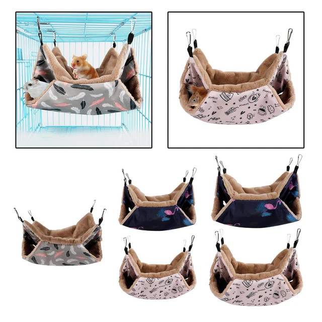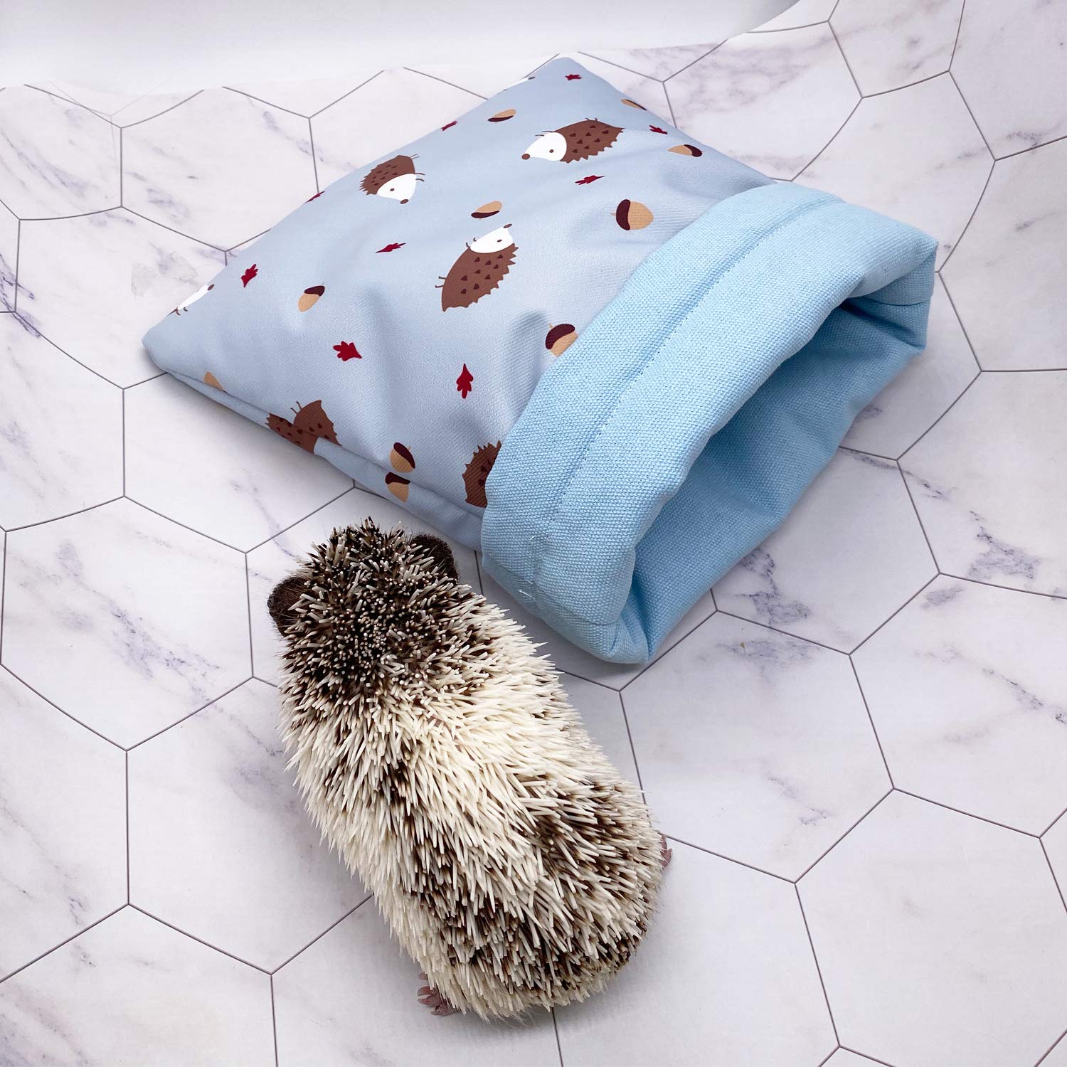 Kuscheliges Zuhause für deine kleinen Lieblinge! Dieser weiche Schlafsack ist das perfekte Bett für Hamster, Igel, Meerschweinchen und andere Kleintiere. \\n\\nZwei Größen zur Auswahl: \\n• Klein: 13 x 12 cm (ca. 25g) \\n• Groß: 23 x 18 cm (ca. 75g) \\n\\nDas Besondere: \\n• Außen wasserdichtes Oxford-Gewebe \\n• Innen weicher, warmer Plüsch \\n• Doppelte Nähte für maximale Sicherheit \\n• Edelstahlklammern zum einfachen Befestigen \\n\\nDie süßen Muster machen jede Menge Spaß - Farben werden nach Verfügbarkeit ausgeliefert. Dein Tierchen wird es lieben, sich in diesem kuscheligen Nest zu verkriechen! \\n\\nEinfach im Käfig befestigen und deinem Tier beim gemütlichen Schlafen zusehen. Perfekt für kalte Wintertage!