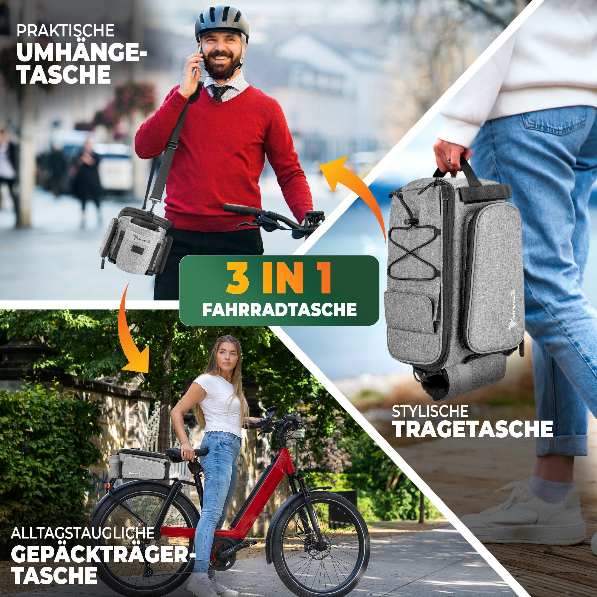Passt an alle gängigen Gepäckträger und sieht dabei noch richtig schick aus in den Farben Schwarz, Grau oder Mint. Einfach ein Allrounder für alle, die viel mit dem Rad unterwegs sind - ob zur Arbeit, beim Einkaufen oder auf Ausflügen.
