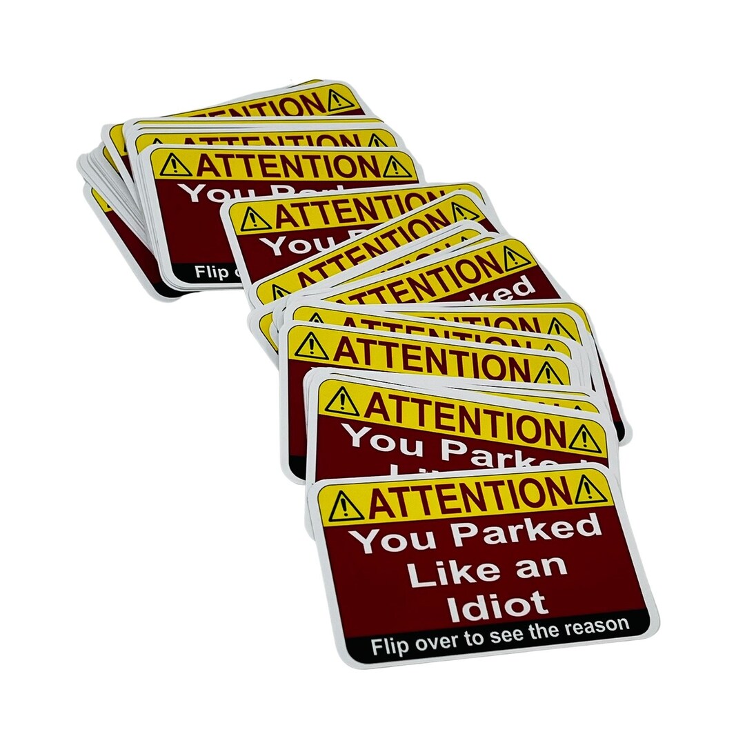 Kennst du das auch? Da parkt jemand einfach total daneben und du möchtest mal so richtig Dampf ablassen? Mit diesen witzigen 'Du hast wie ein Idiot geparkt'-Karten machst du das auf humorvolle Art! Das Set hat 50 Karten in verschiedenen Designs, jede 9x5 cm groß - perfekt für die Handtasche oder das Handschuhfach. Die Karten sind aus beschichtetem Papier, total stabil und verblassen nicht so schnell. Einfach an die Windschutzscheibe klemmen oder unter den Wischer schieben, und schon kommt deine Message an - ohne dass du dich aufregen musst! Super praktisch: Die Karten haben vorne den frechen Spruch und hinten eine nette Erklärung, warum das Parken daneben war. Übrigens: Die Dinger sind auch ein mega Geschenk für alle, die sich über Falschparker ärgern! Mach deinen Ärger kreativ - mit diesen lustigen Parkkarten.